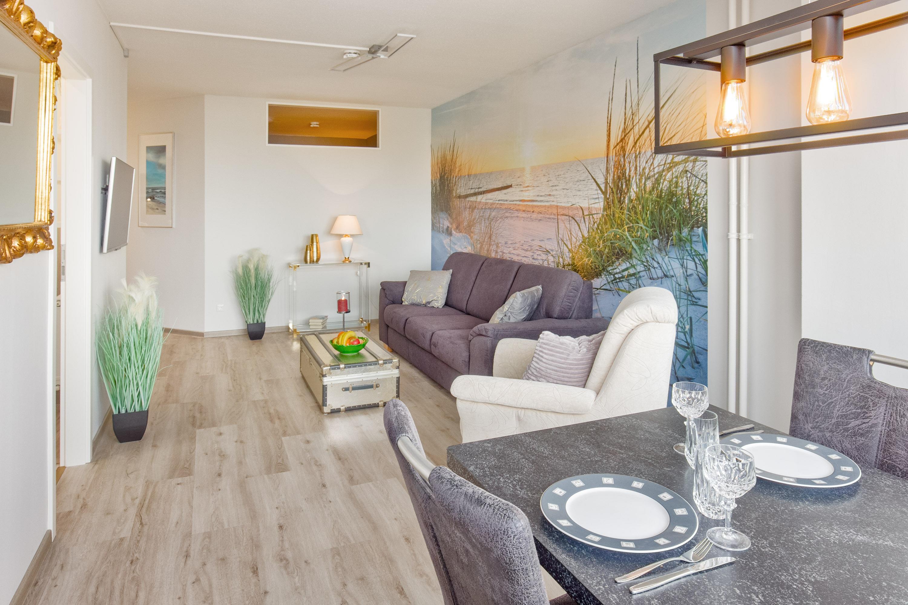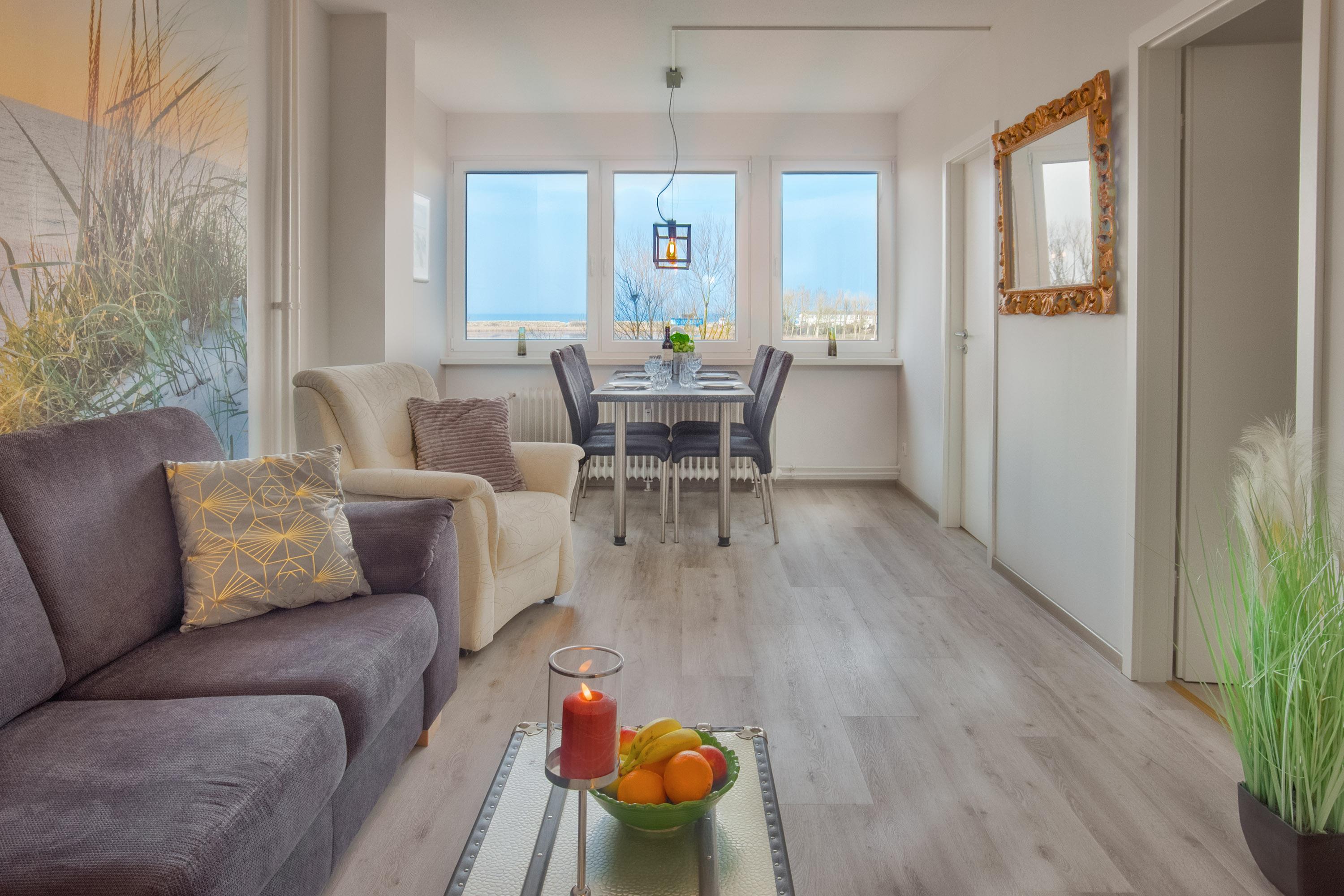 Moderne Ferienwohnung mit Panoramablick auf die Ostsee, strandnah und komfortabel eingerichtet in Heiligenhafen.