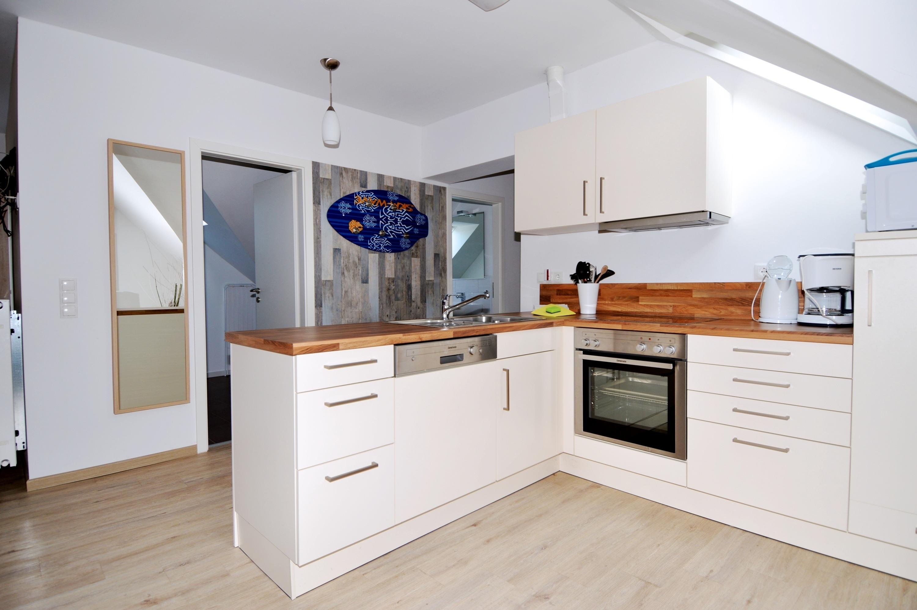 Die Küche ist praktisch und gut ausgestattet und bietet alles, was Sie für die Selbstversorgung während Ihres Aufenthaltes benötigen. Ein Geschirrspüler, eine Mikrowelle sowie eine Kaffeemaschine erleichtern den Alltag im Urlaub und sorgen dafür, dass Sie Ihre Mahlzeiten bequem zubereiten können – vom schnellen Frühstück bis zum entspannten Abendessen.