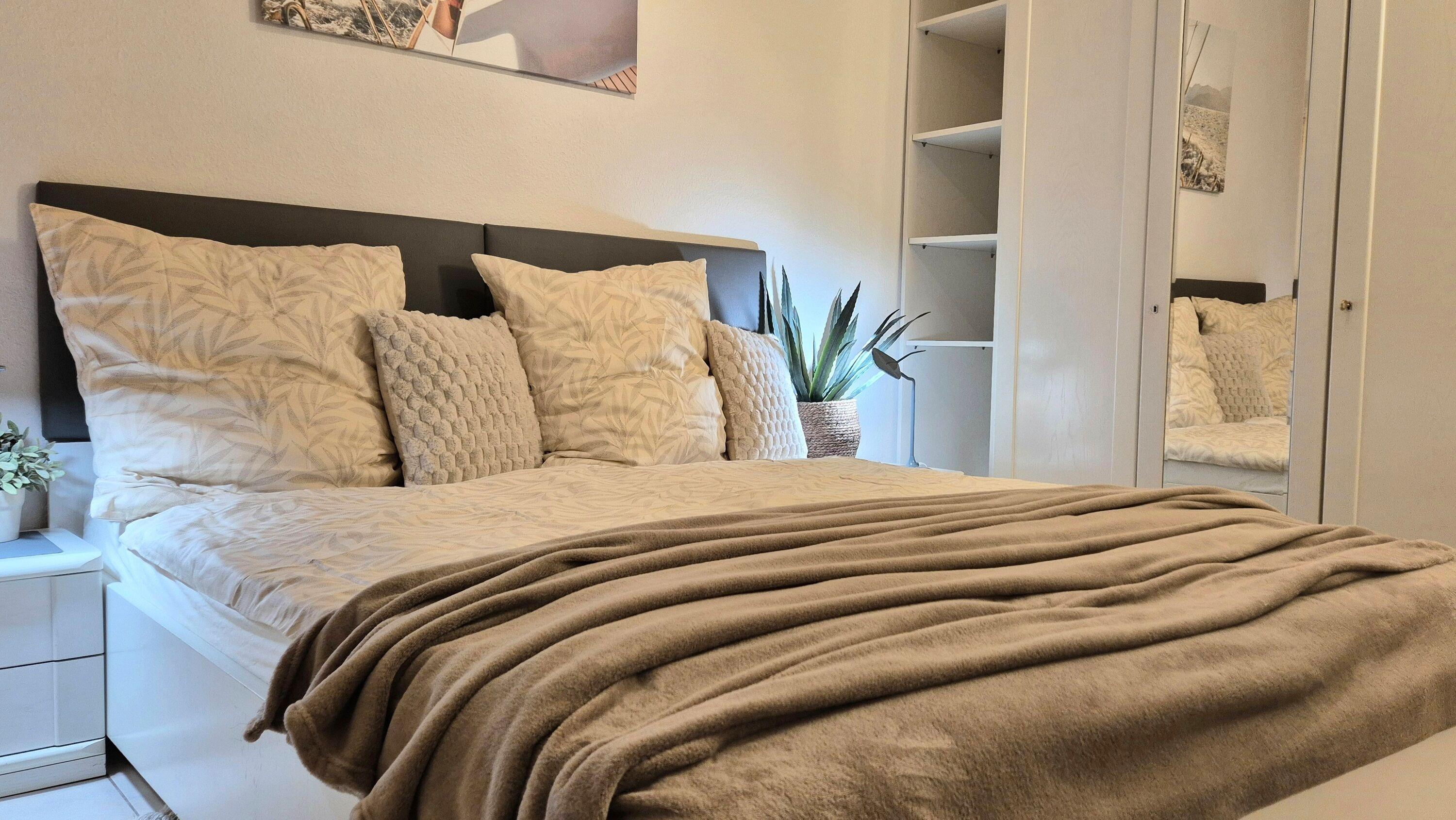 Die Wohnung verfügt über drei separate Schlafzimmer, die allen Gästen angenehme Rückzugsmöglichkeiten bieten. In den Schlafzimmern 2 und 3 sorgen Rollläden für eine gute Verdunklung und erholsame Nächte.