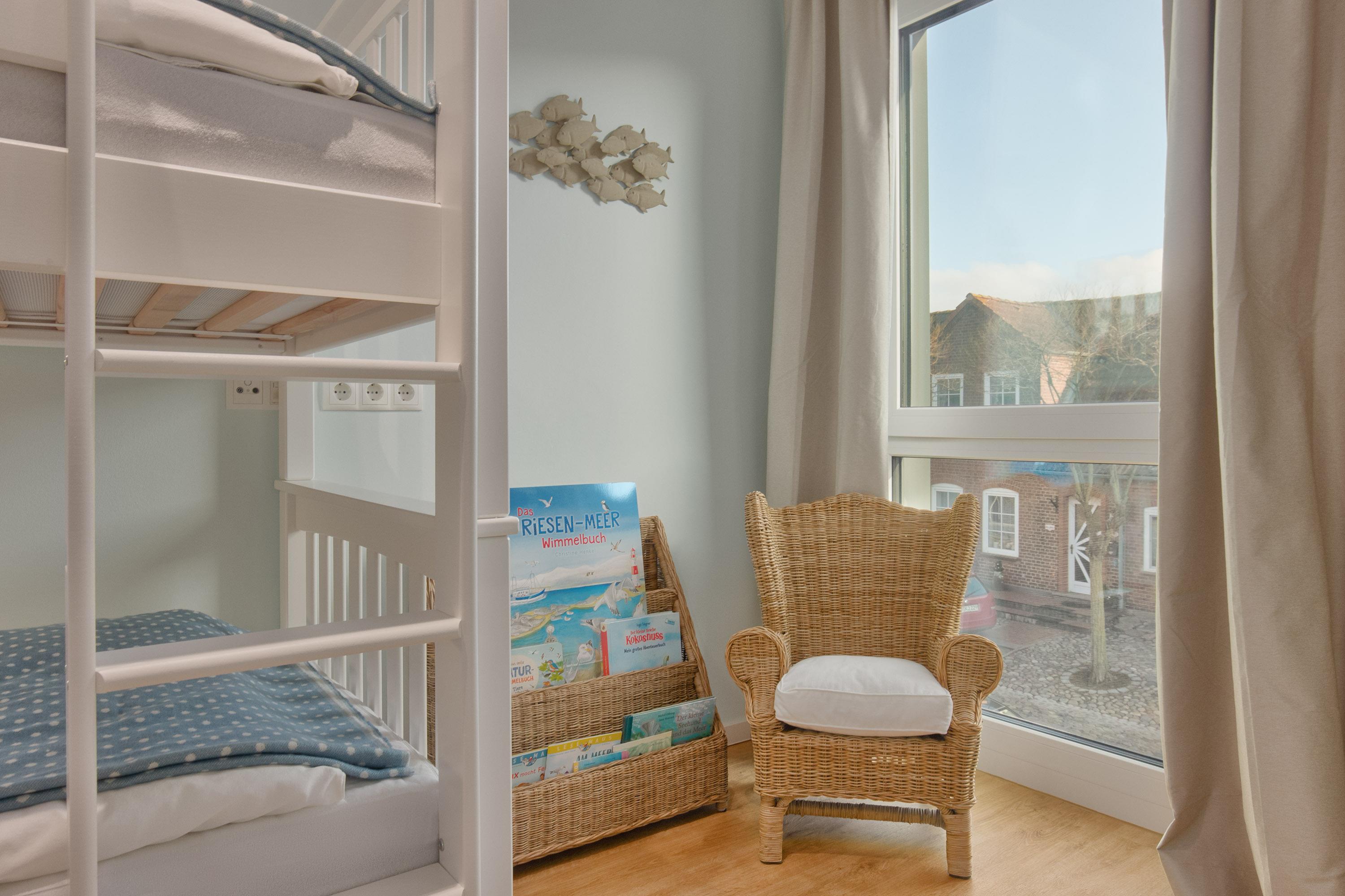 Ebenso komfortabel geht es im ersten Schlafzimmer der Wohnung weiter. Hier wartet ein einladendes Doppelboxspringbett (180x200) und TV. Das zweite Schlafzimmer hat ein Etagenbett (90x200, maximal 120kg je Liegefläche, optimal für Kinder).