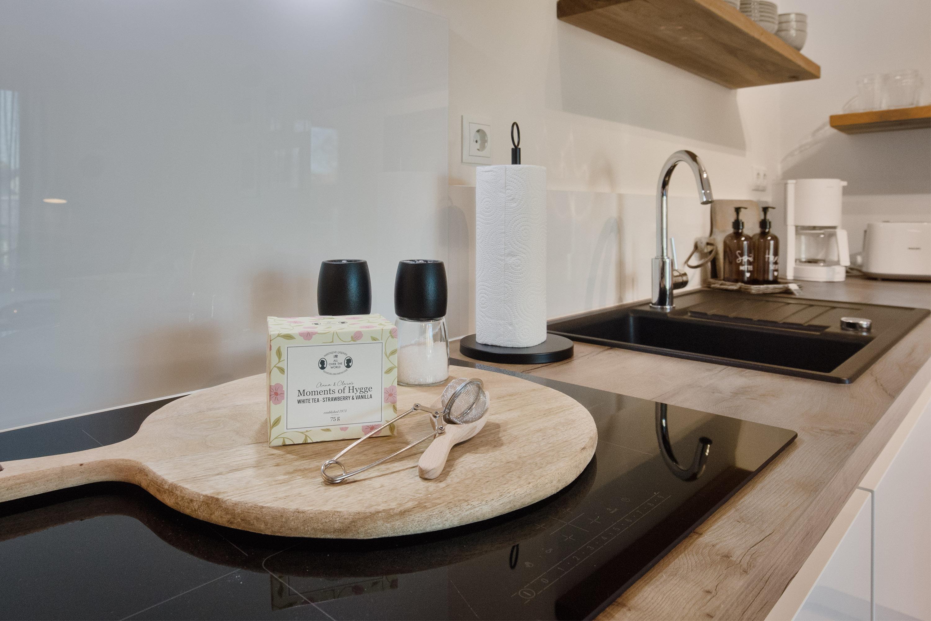Herzstück ist der einladende Wohn- und Essbereich. Hier kann auf der gemütlichen Couch entspannt werden oder Sie genießen gesellige Stunden am Esstisch. Naturtöne und mit viel Geschick ausgewählte Dekorationen sorgen für ein wunderbar wohnliches Gefühl. TV und WLAN sind selbstverständlich. Durch die großen, charmanten Fenster haben Sie einen Blick in die Außenanlage vom Harbour Side Heiligenhafen.