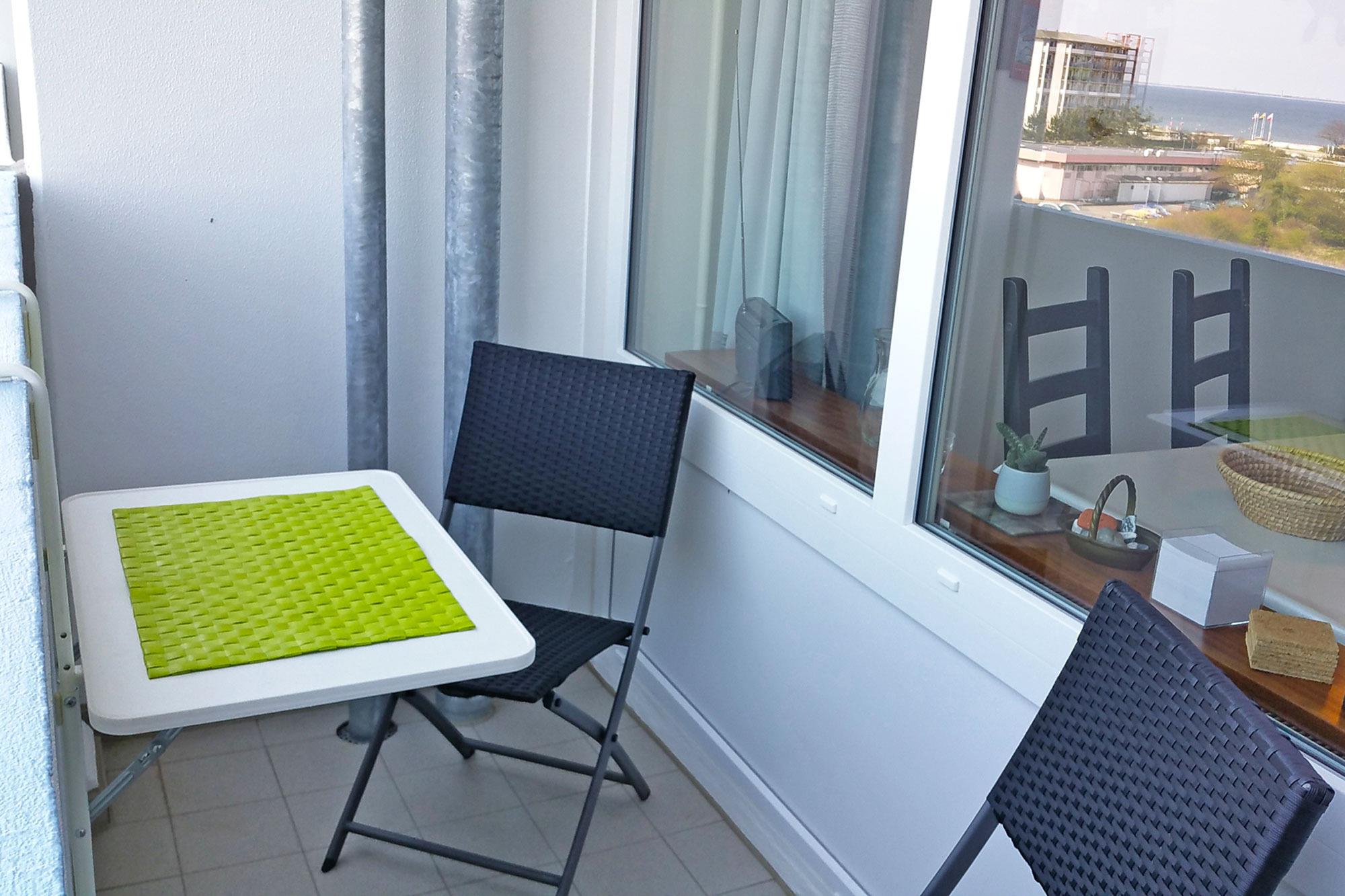 Auf dem möblierten Nordbalkon können Sie die atemberaubende Aussicht auf die Ostsee in vollen Zügen genießen – ein perfekter Ort, um die Seele baumeln zu lassen und die frische Meeresbrise zu spüren.