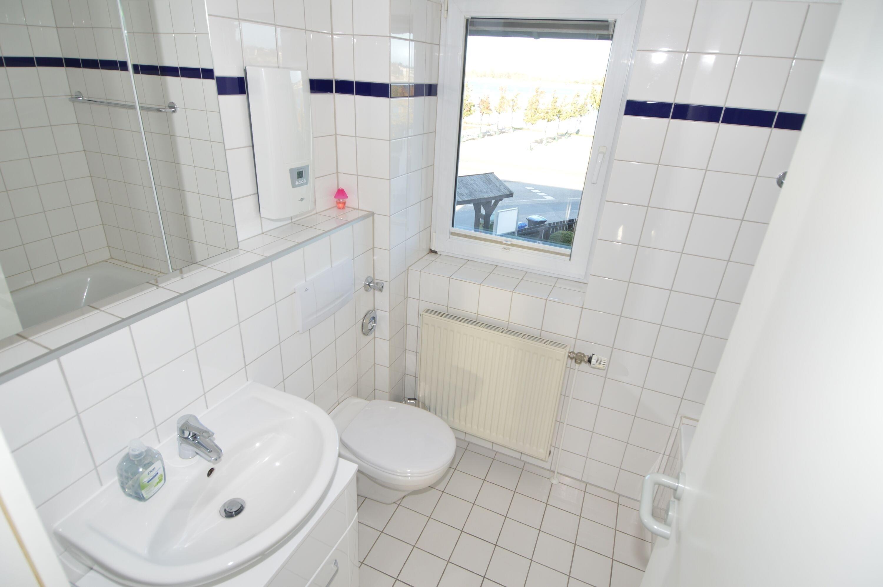 Das Badezimmer ist gepflegt und funktional gestaltet und verfügt über eine Badewanne sowie ein Waschbecken – ideal, um nach einem Strand- oder Ausflugstag zu entspannen.