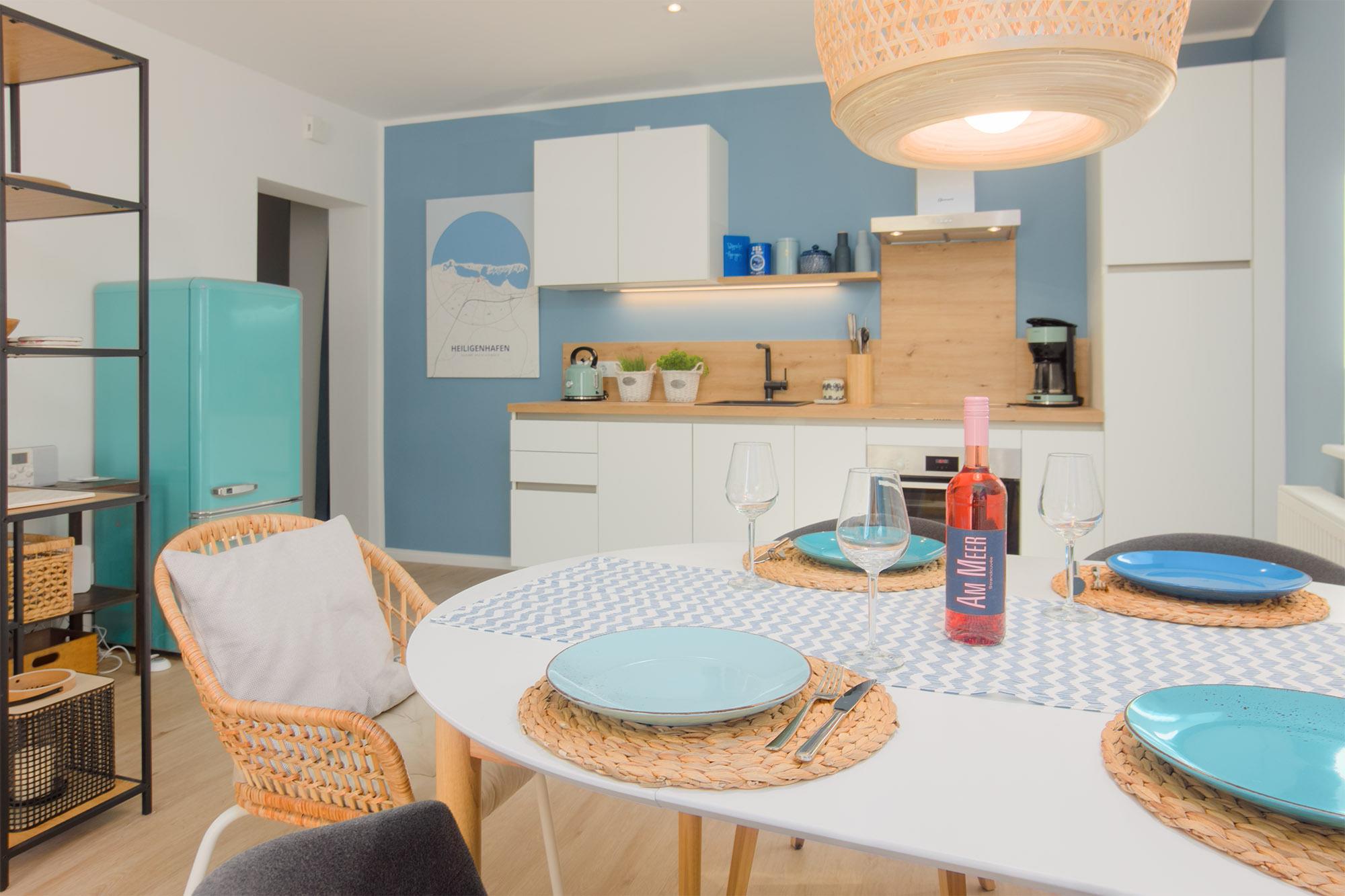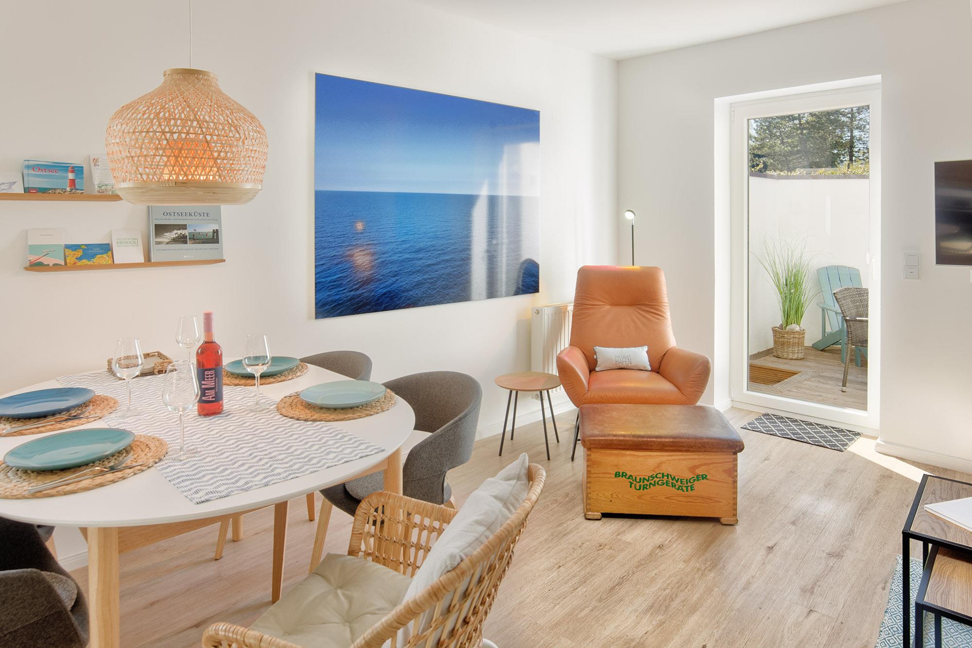 Moderne Ferienwohnung LilleHavn in Heiligenhafen, zentral gelegen mit Terrasse, Sauna und WLAN für erholsamen Urlaub.