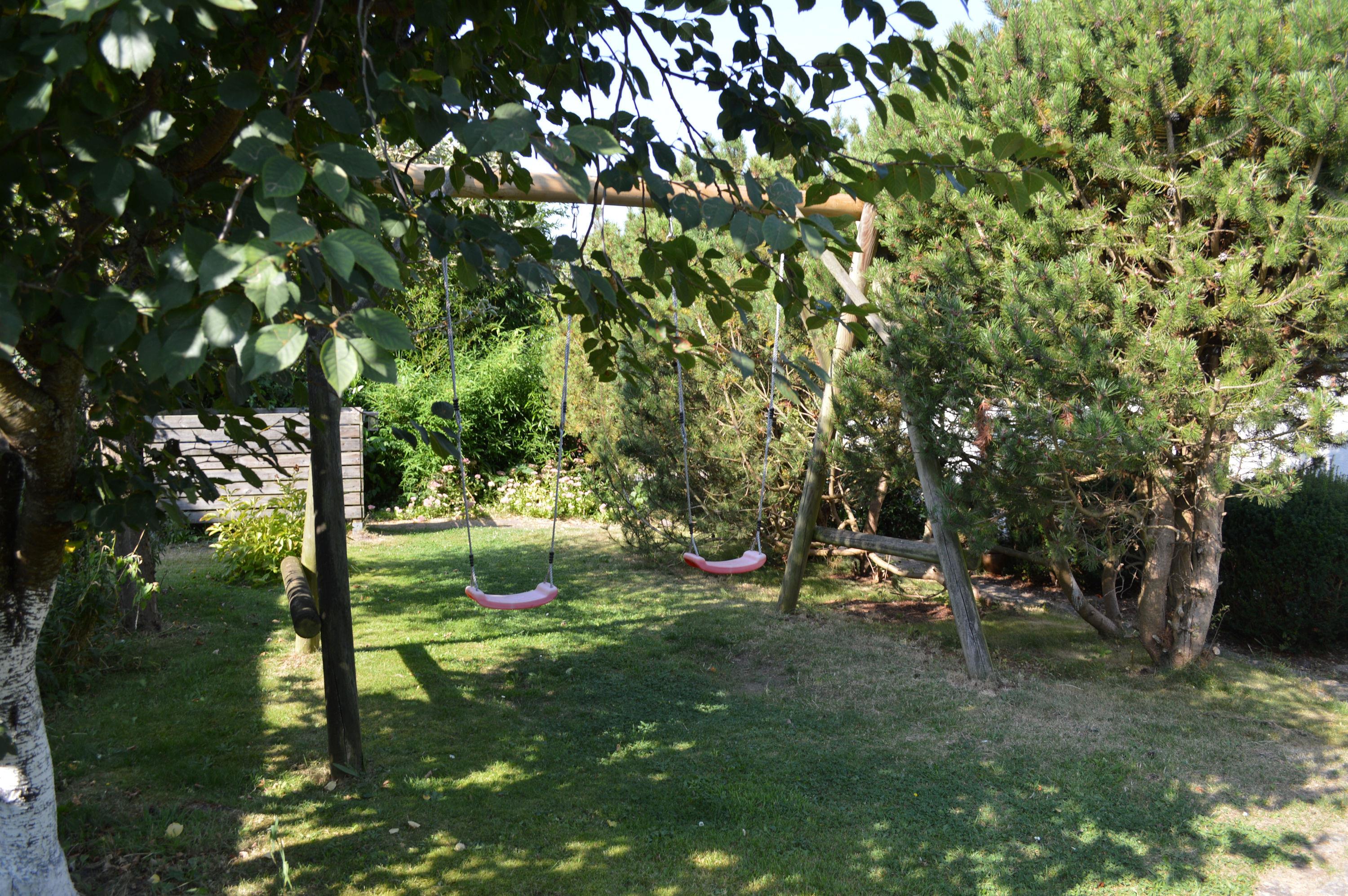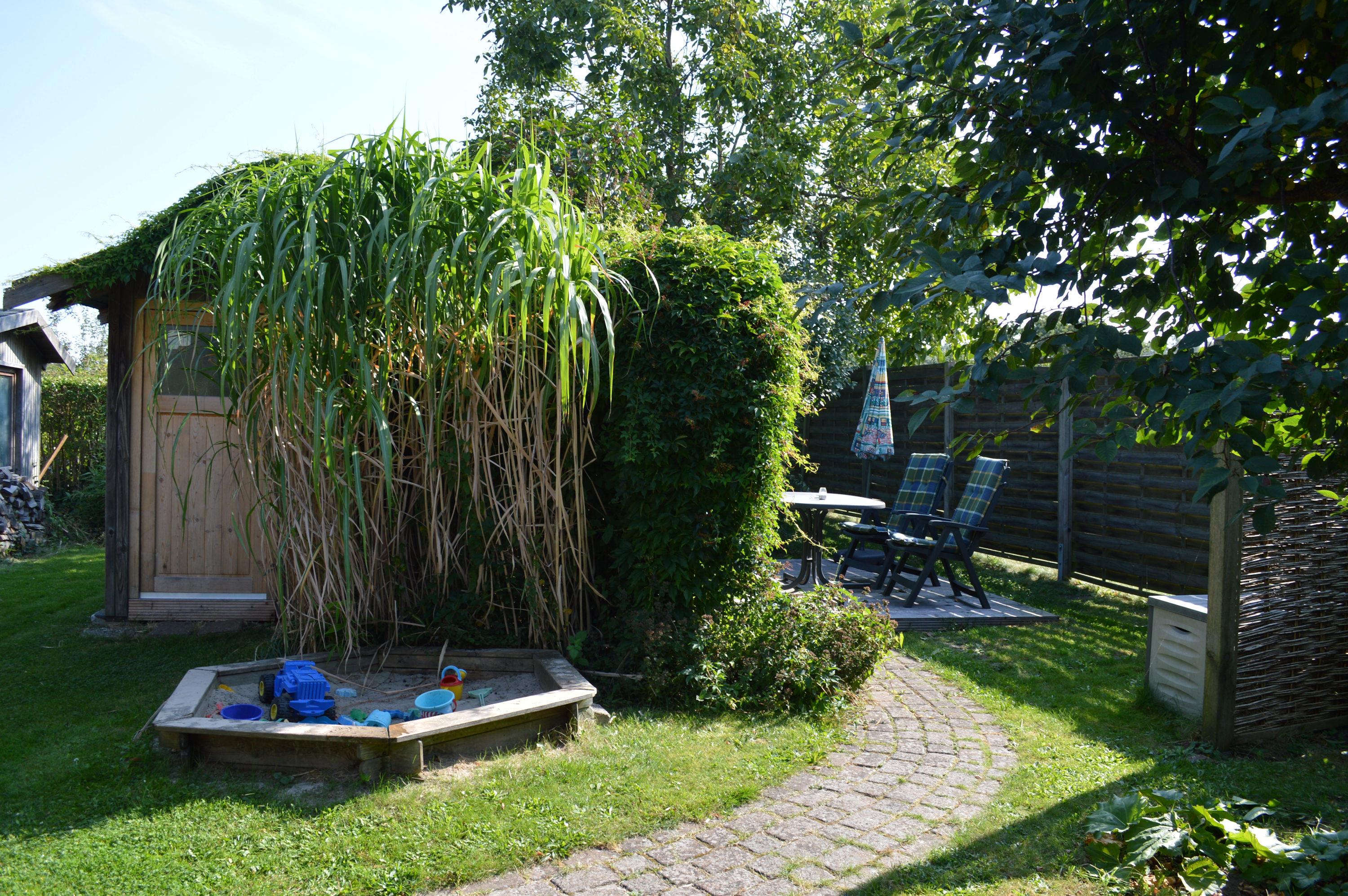 Im Garten mit Schaukel und Sandkasten liegt die zur Wohnung gehörende Terrasse. Diese Wohnung eignet sich besonders für Familie mit Kindern oder für getrennt schlafende Erwachsene. Ihren Hund dürfen Sie gerne mitbringen, in 150 Meter Luftlinie finden Sie einen bewaldeten Fußweg am Wasser, der Sie in ca. 5 Minuten zum Hafen und ca. 10 Minuten in die Innenstadt führt.