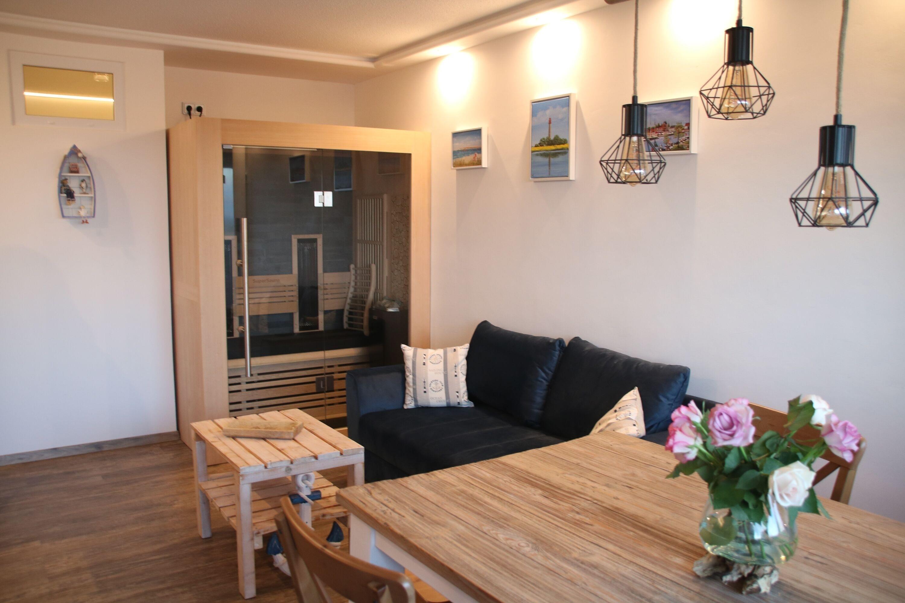 Komfortable Ferienwohnung mit Sauna und Meerblick in Heiligenhafen, ideal für entspannte Tage an der Ostsee.