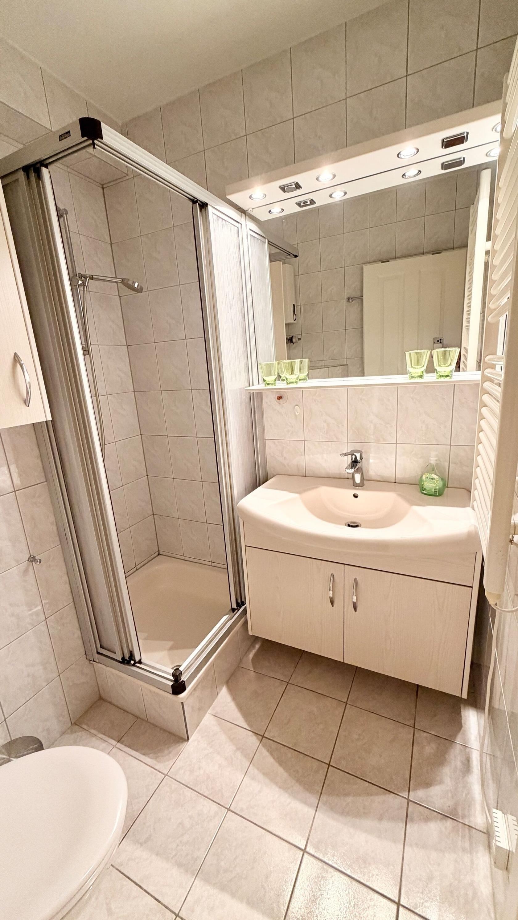 Das Badezimmer ist gepflegt und praktisch eingerichtet und rundet den Wohnkomfort der Ferienwohnung ab.