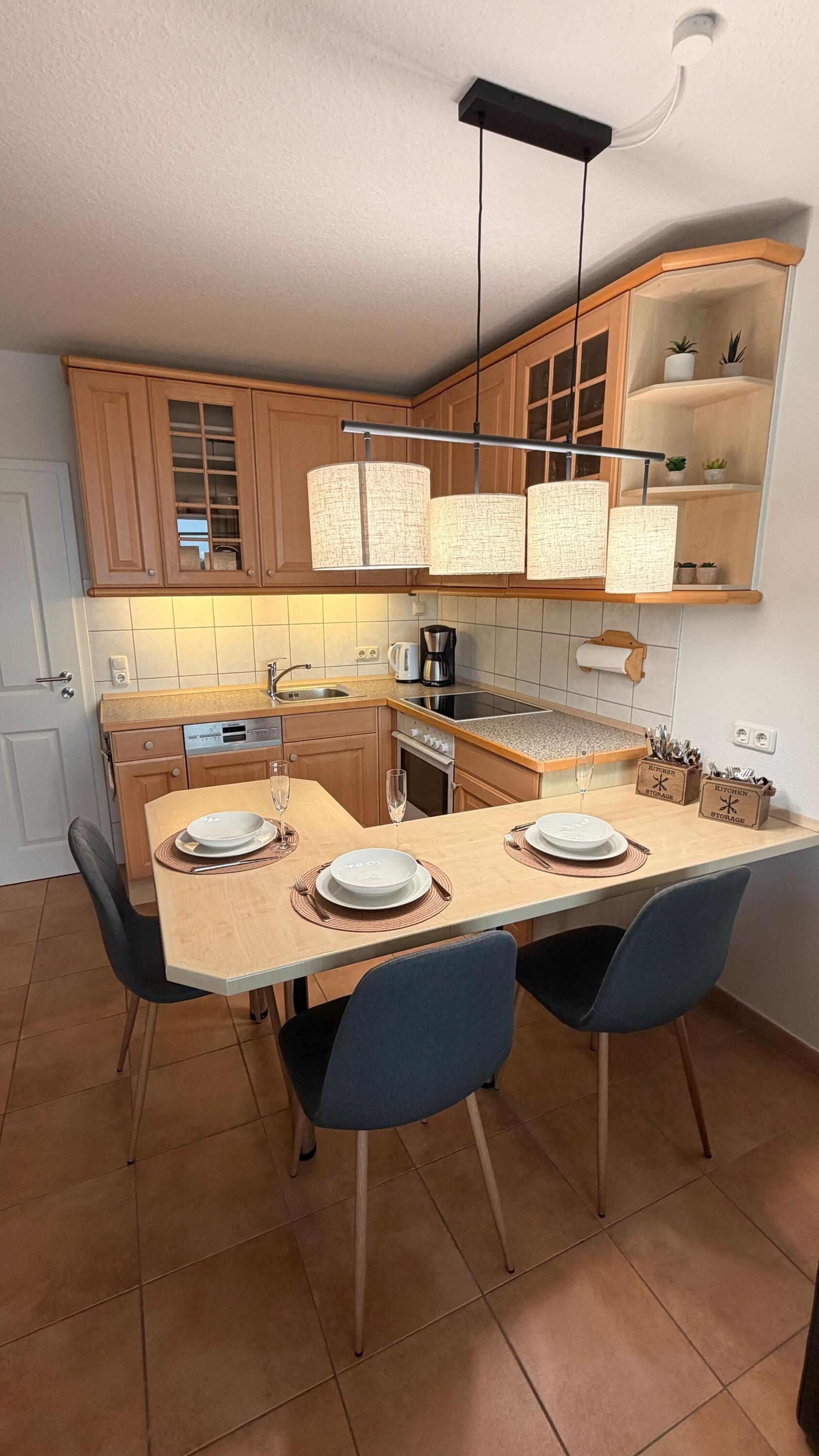 Die Küche ist funktional und gut ausgestattet und ermöglicht Ihnen eine unkomplizierte Selbstversorgung während Ihres Aufenthaltes. Ein Geschirrspüler sowie eine Kaffeemaschine gehören zur Ausstattung und erleichtern den Urlaubsalltag – vom entspannten Frühstück bis zum gemeinsamen Abendessen.