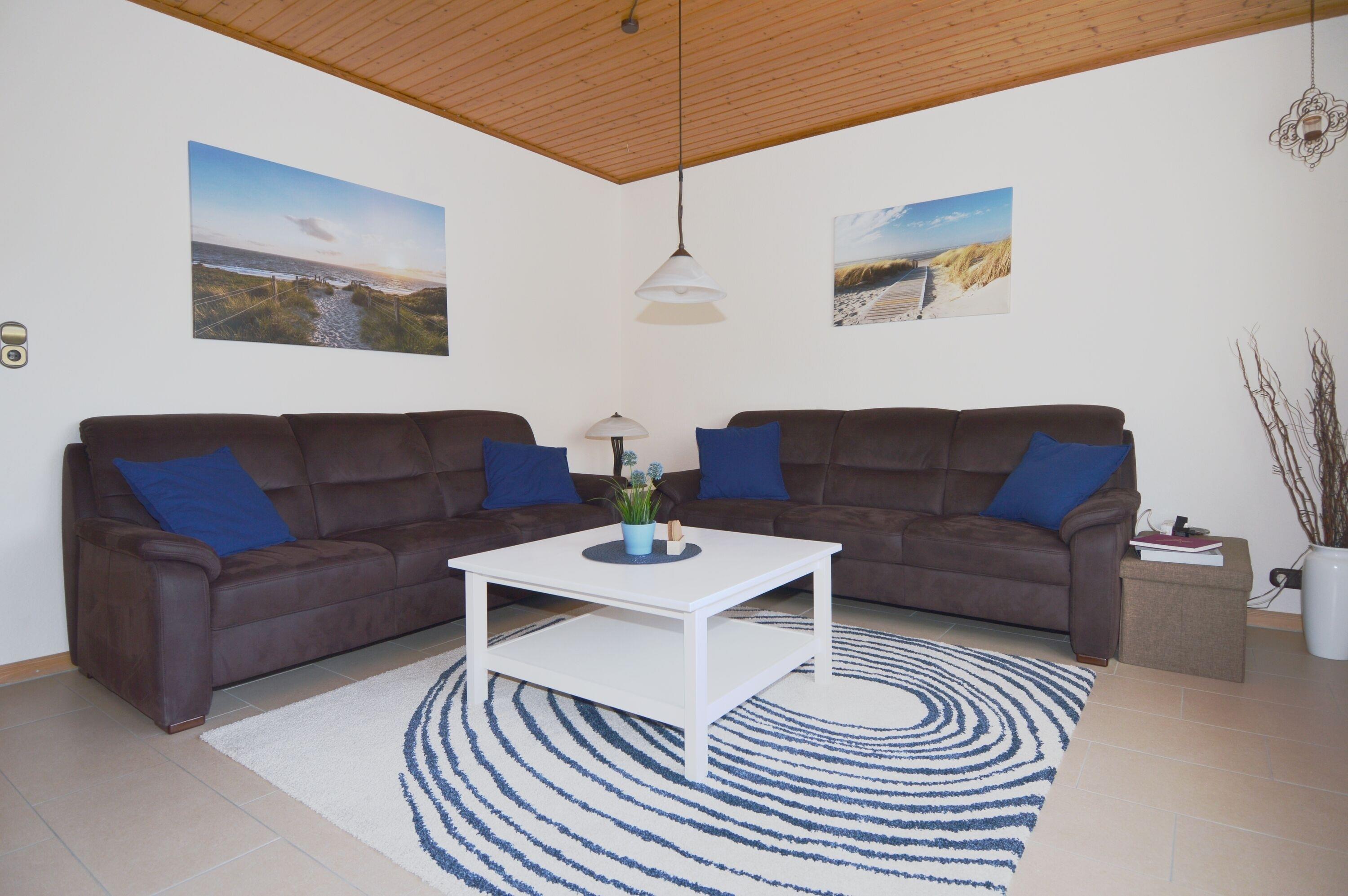 Herzstück der Wohnung ist der einladende Wohnbereich im 1. Obergeschoss. Hier kann auf der gemütlichen Couch entspannt oder der Abend vor dem Kaminofen ausgeklingt werden, der besonders an kühleren Tagen für eine behagliche Atmosphäre sorgt. Mit dem WLAN bleiben Sie auch im Urlaub bequem online oder genießen Ihre Lieblingsserien und Filme.