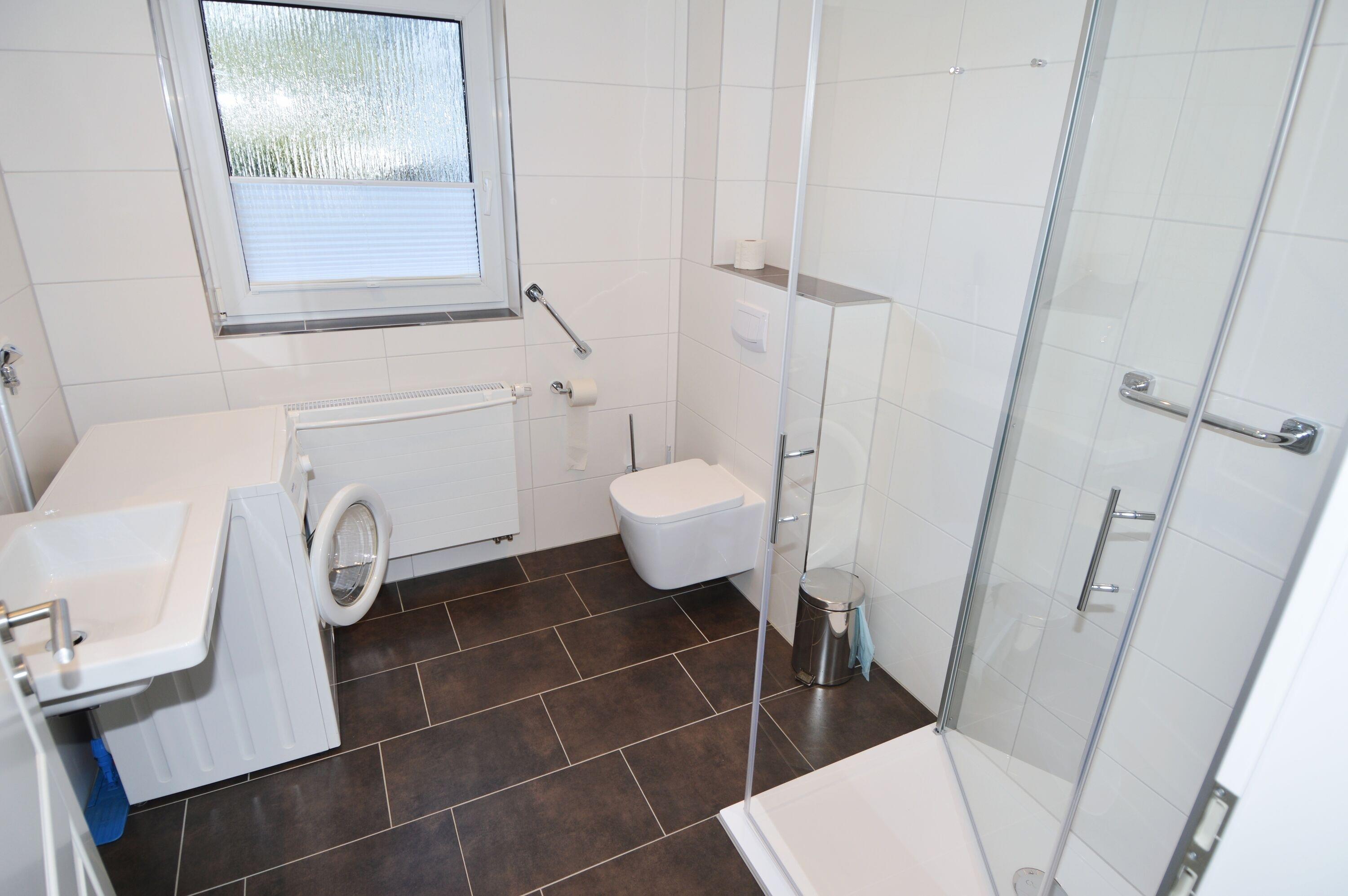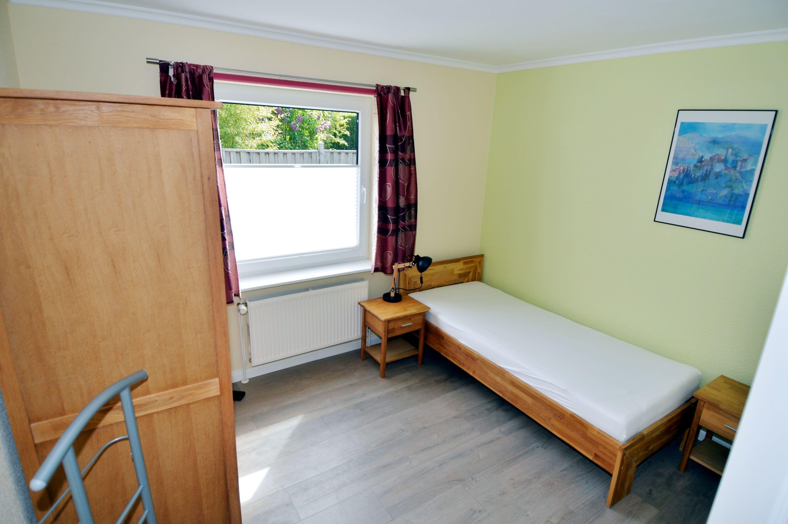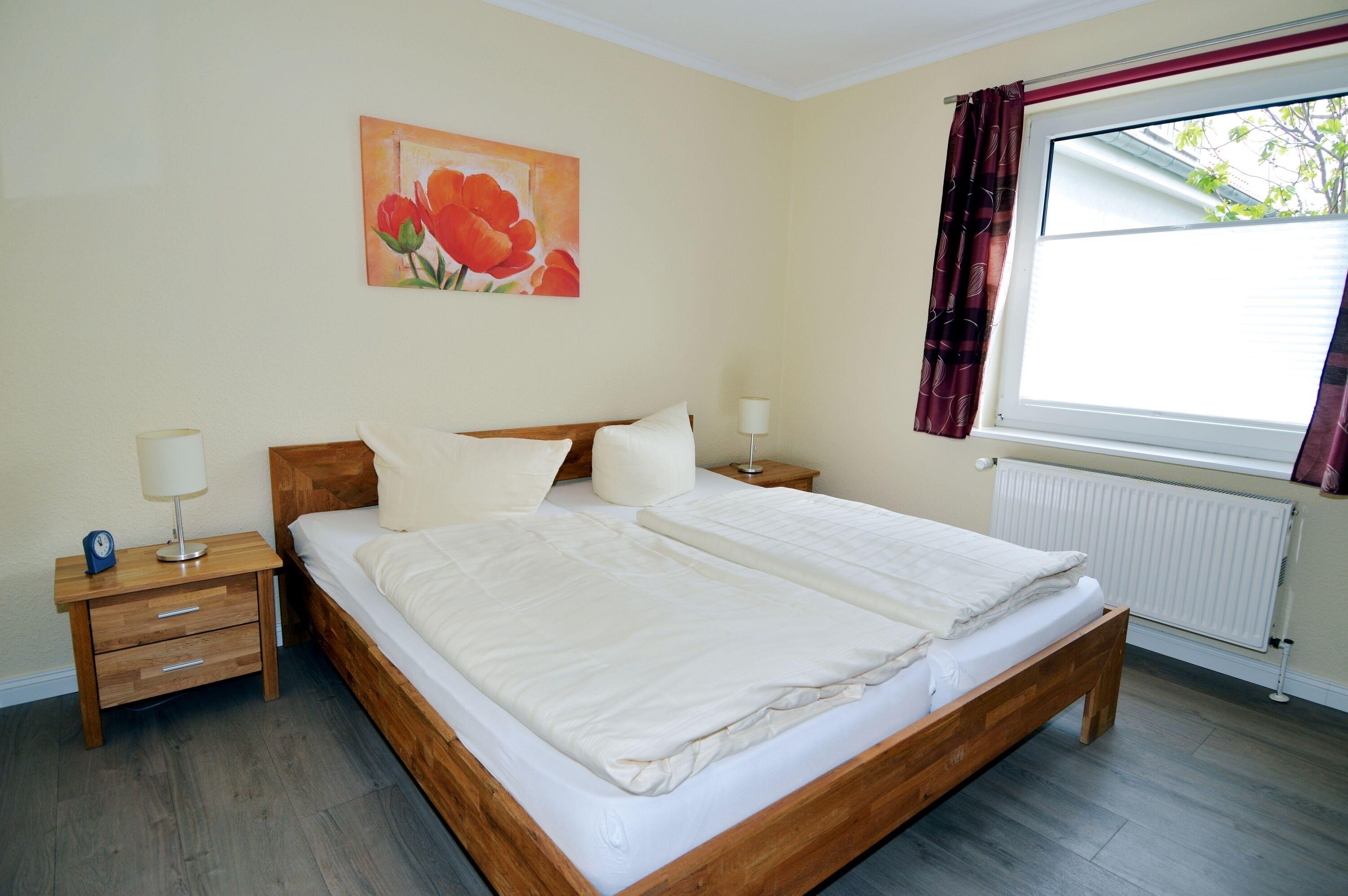 Die Ferienwohnung für 4 Personen befindet sich im Erdgeschoss eines Ferienhauses mit insgesamt 2 Wohneinheiten. Sie ist vollständig ausgestattet und bietet einen komfortablen Aufenthalt. Im ersten Schlafzimmer steht ein Doppelbett und ein Kleiderschrank zur Verfügung. Auf Wunsch kann auch ein Babybett aufgestellt werden. (Gebühr) Das zweite Schlafzimmer befindet sich direkt daneben und verfügt über zwei Einzelbetten und einen Kleiderschrank. Das moderne Duschbad beinhaltet auch eine eigene Waschmaschine.