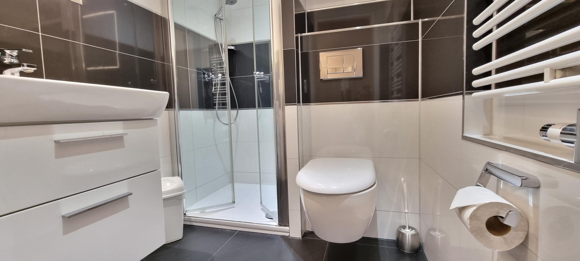 Das moderne Duschbad rundet den Wohnkomfort ab und bietet alles, was Sie für einen angenehmen Aufenthalt benötigen.