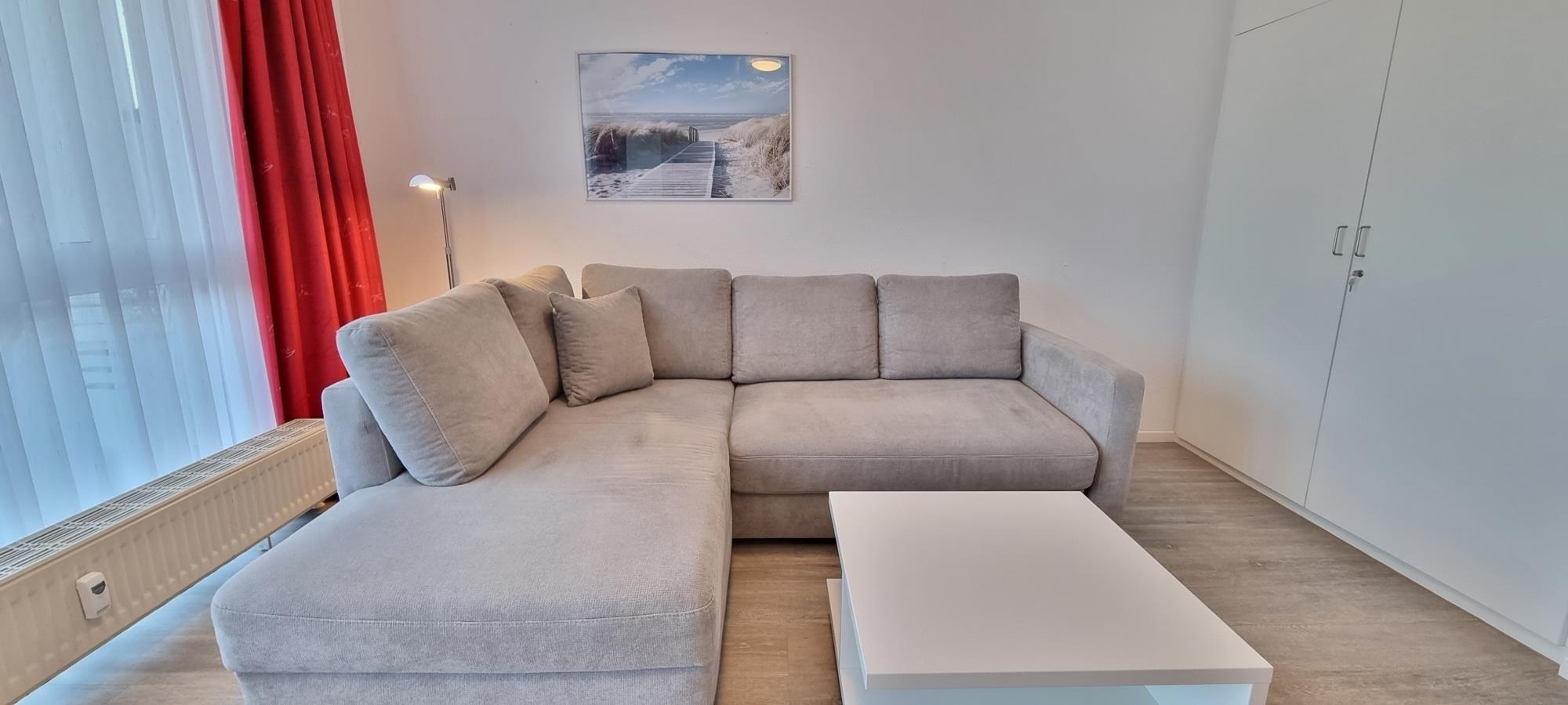 Willkommen in unserer charmanten 2-Zimmer-Ferienwohnung in Heiligenhafen – perfekt für bis zu 4 Personen. Genießen Sie entspannte Urlaubstage in einer strandnahen Unterkunft mit einer wunderschönen Terrasse und atemberaubendem Meerblick. Das helle Wohnzimmer ist mit einem komfortablen Schlafsofa ausgestattet, sodass auch größere Familien oder Gruppen bequem Platz finden.