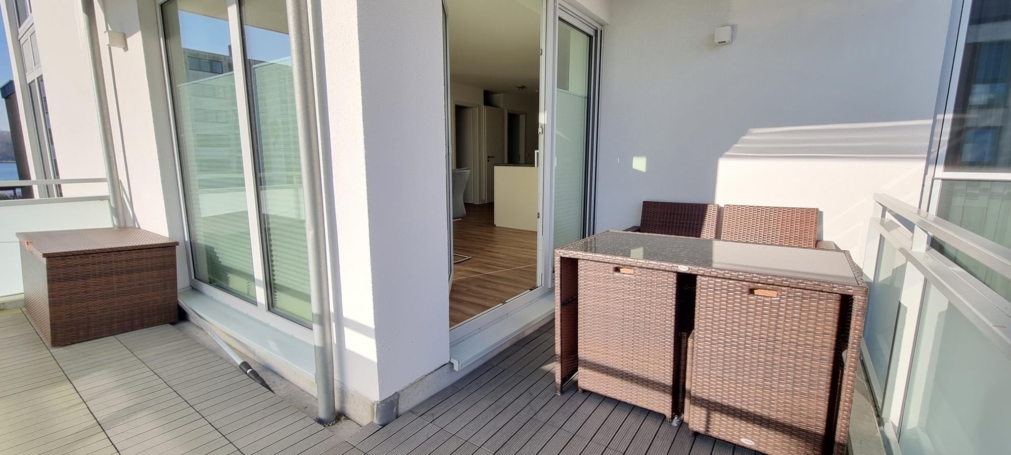 Ein besonderes Highlight ist der Balkon mit Meerblick. Hier laden eine Lounge-Couch, ein Tisch und vier Stühle zum Verweilen ein – perfekt für ein Frühstück in der Morgensonne oder einen entspannten Sundowner am Abend.