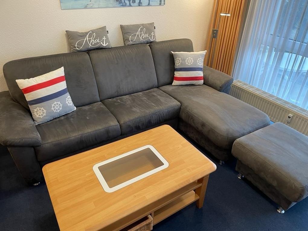 Das liebevoll eingerichtete und renovierte 2-Zimmer-Appartement verfügt über ein separates Schlafzimmer mit Doppelbett und Kleiderschrank. Im kombinierten Wohn- und Essbereich mit integrierter Küchenzeile befindet sich eine Schlafcouch, die zwei zusätzliche Schlafplätze bietet. Hier finden Sie alles, was Sie für einen unkomplizierten Aufenthalt benötigen.