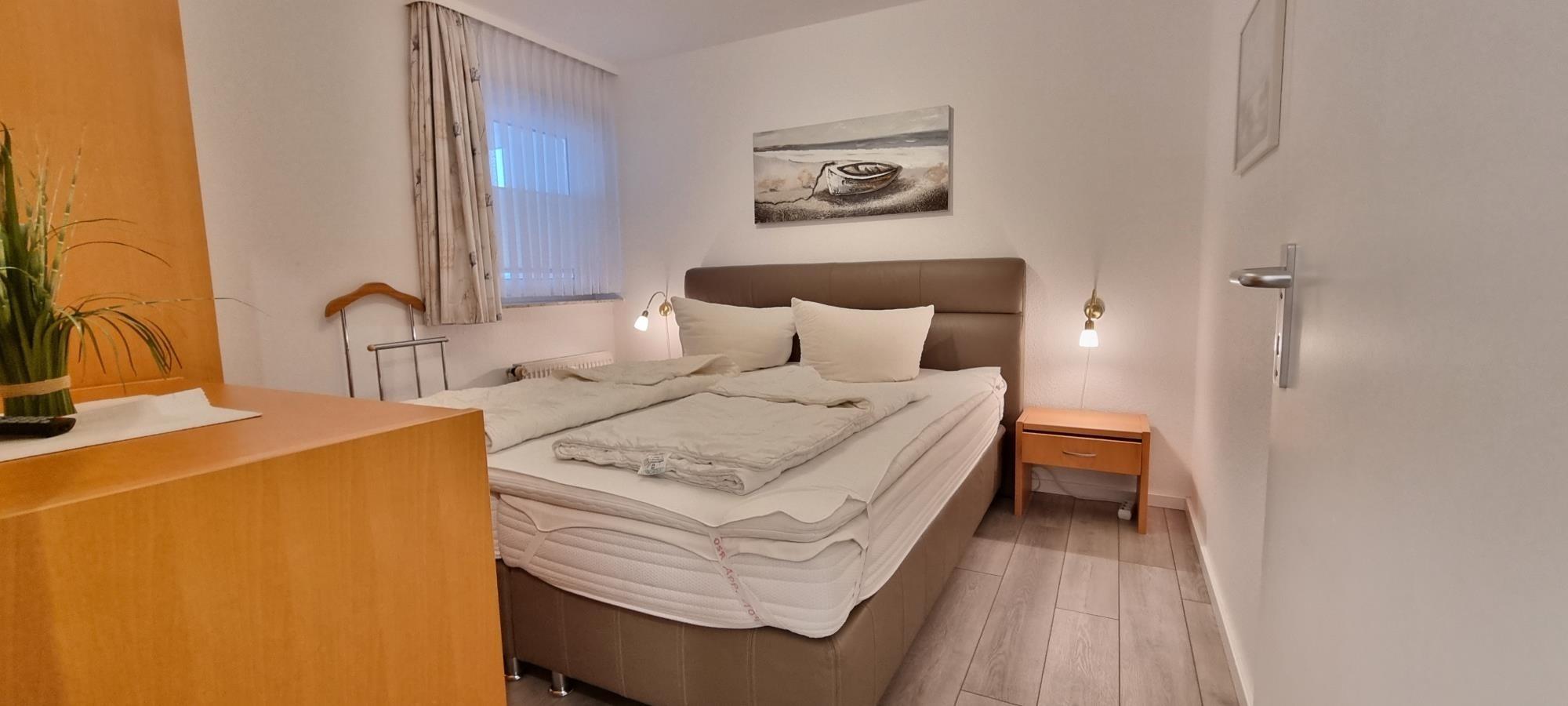 Das separate Schlafzimmer ist mit einem hochwertigen Boxspringbett (durchgehendes Laken) und einem geräumigen Kleiderschrank ausgestattet und sorgt für erholsamen Schlaf. Im Wohn- und Essbereich erwartet Sie eine gemütliche Atmosphäre mit integrierter Küchenzeile sowie einer praktischen Schlafcouch mit Ausziehfunktion, die Platz für bis zu zwei weitere Personen bietet.