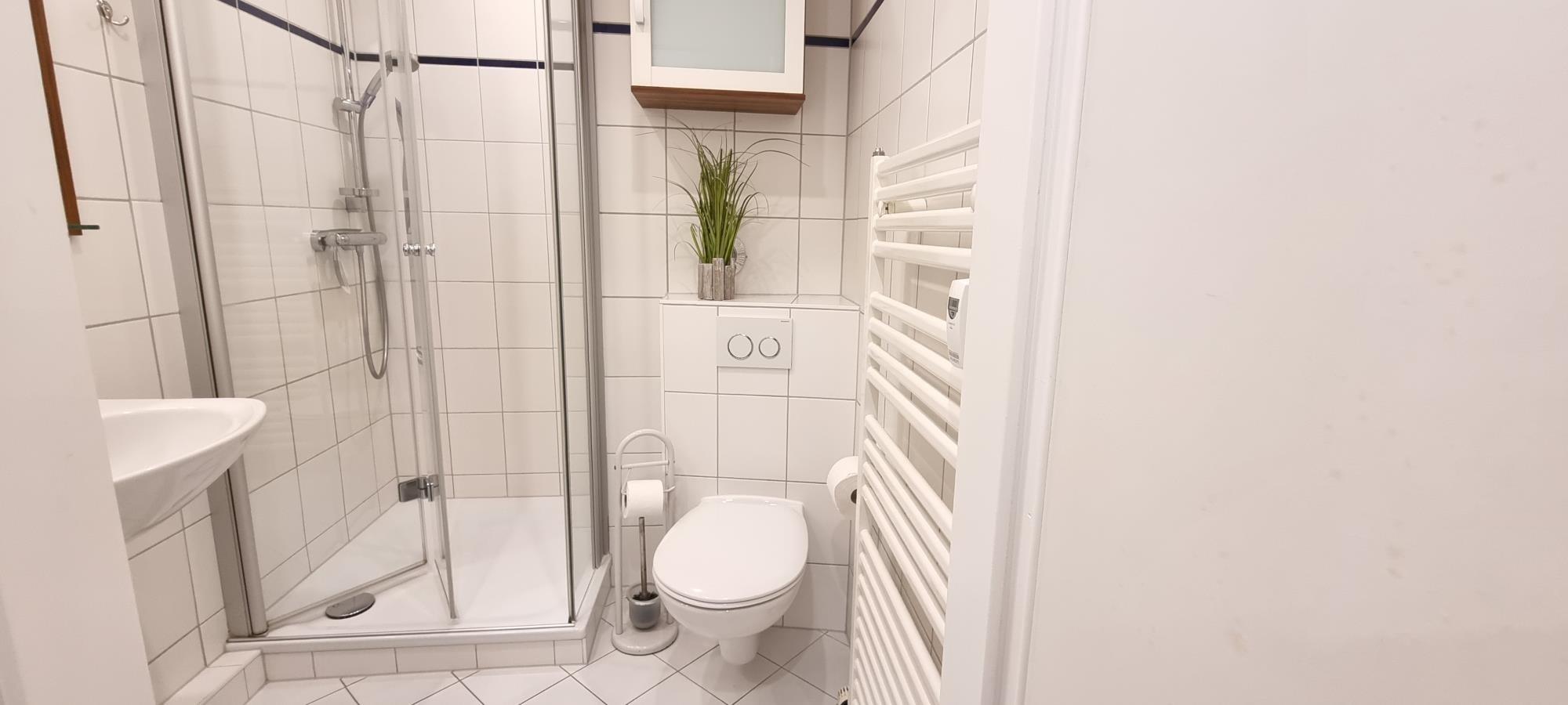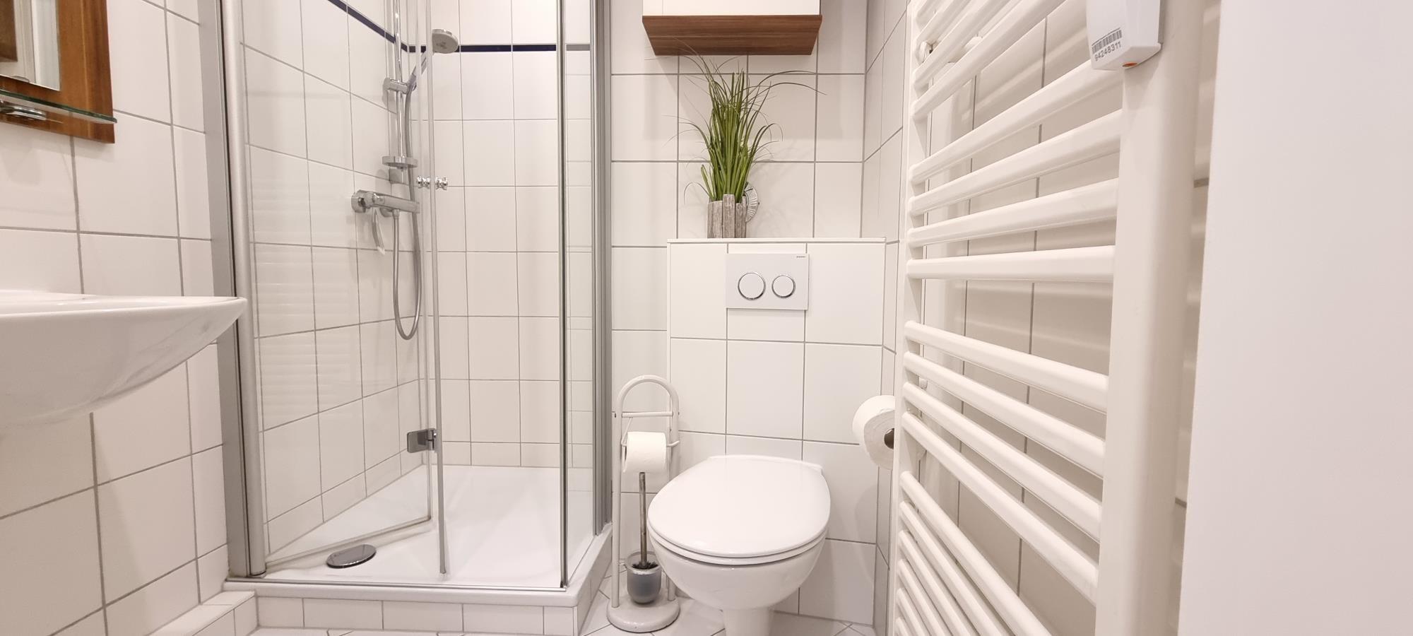 Die kompakte, voll ausgestattete Küchenzeile bietet alles, was Sie für Ihre Selbstverpflegung benötigen – ideal für ein entspanntes Frühstück oder ein gemeinsames Abendessen. Das moderne Duschbad rundet den Wohnkomfort ab und sorgt für einen angenehmen Start in den Tag.