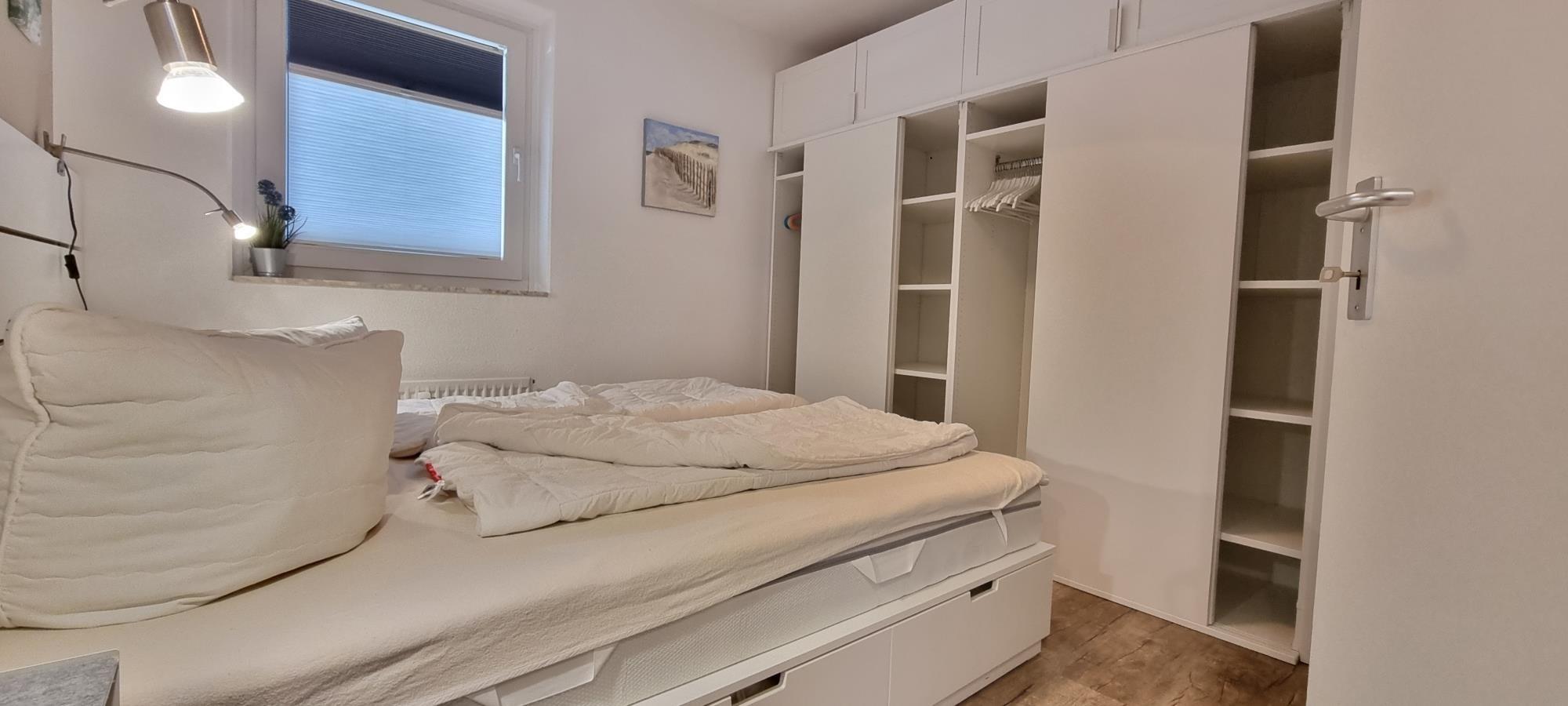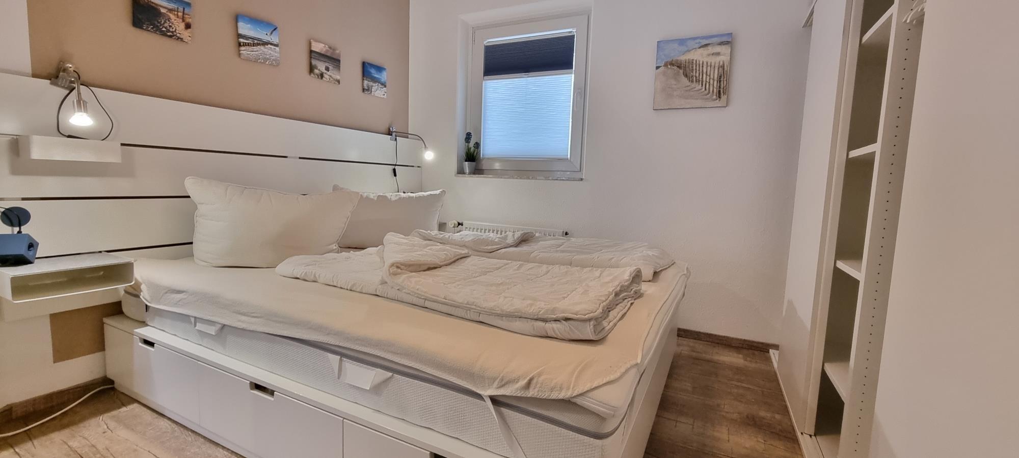 Genießen Sie entspannte Urlaubstage in unserer modernen Ferienwohnung im Hochparterre, ideal für Paare, kleine Familien oder Freunde. Das separate Schlafzimmer ist mit einem gemütlichen Doppelbett und einem geräumigen Kleiderschrank ausgestattet – hier schlafen Sie nach einem erlebnisreichen Tag besonders erholsam.