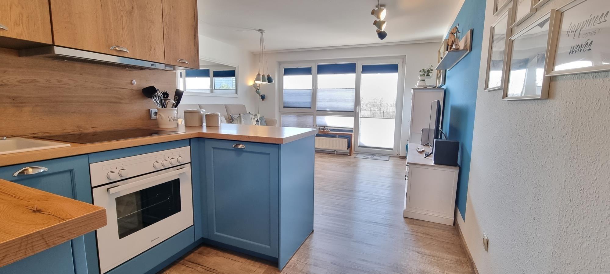 Ein Highlight der Wohnung ist die möblierte Terrasse mit Strandkorb und direktem Blick auf den Binnensee. Hier können Sie die Abendsonne genießen, ein Buch lesen oder einfach die Ruhe der Natur erleben – der perfekte Ort, um zu entspannen und abzuschalten.