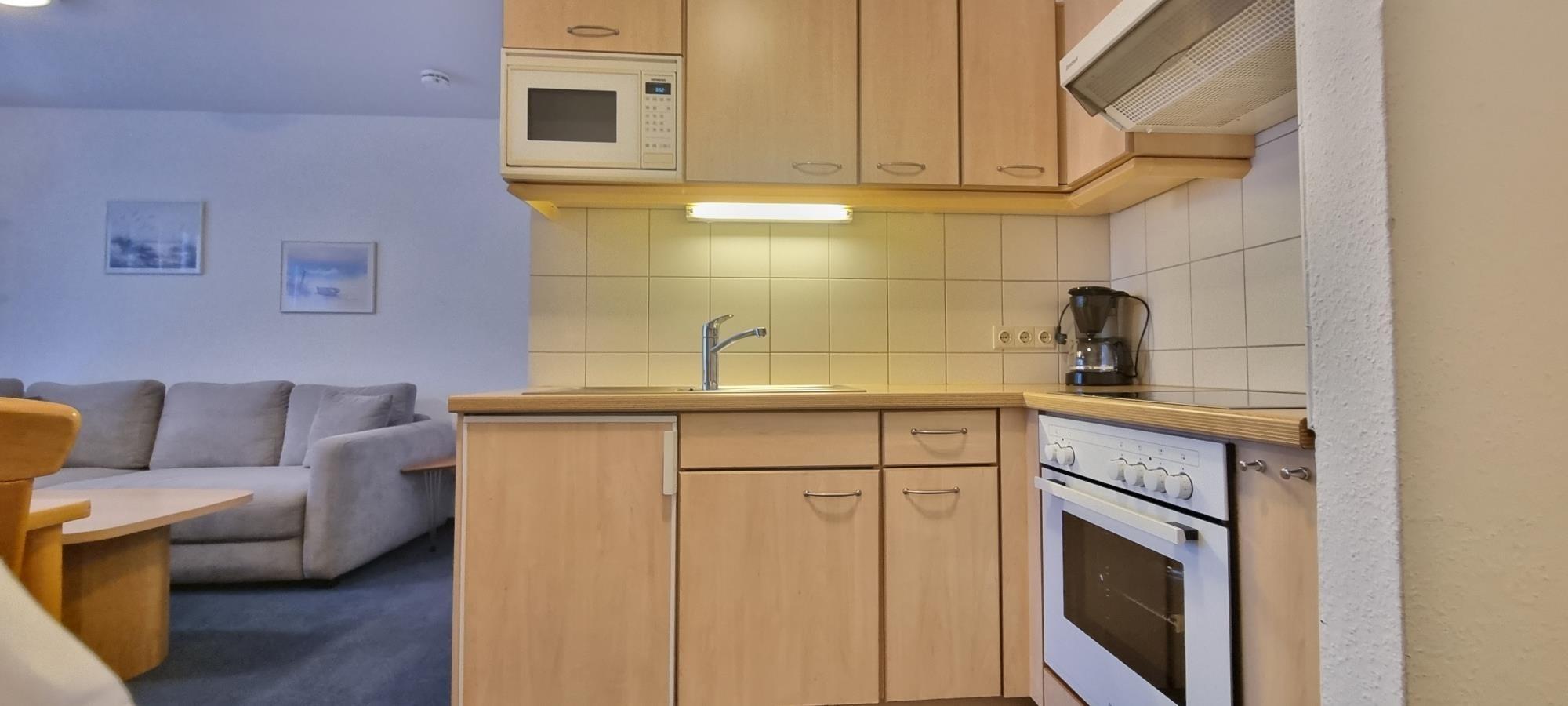 Die Wohnung bietet Platz für bis zu 4 Personen und verfügt über ein separates Schlafzimmer mit gemütlichem Doppelbett sowie einen Wohnbereich mit Schlafcouch. Die integrierte Küchenzeile ist voll ausgestattet, sodass Sie Ihre Lieblingsgerichte selbst zubereiten können. Morgens können Sie Ihr Frühstück auf der Terrasse mit herrlichem Ostseeblick genießen und dabei die frische Meeresluft einatmen. Gartenmöbel stehen bereit, um den Aufenthalt im Freien noch angenehmer zu gestalten.