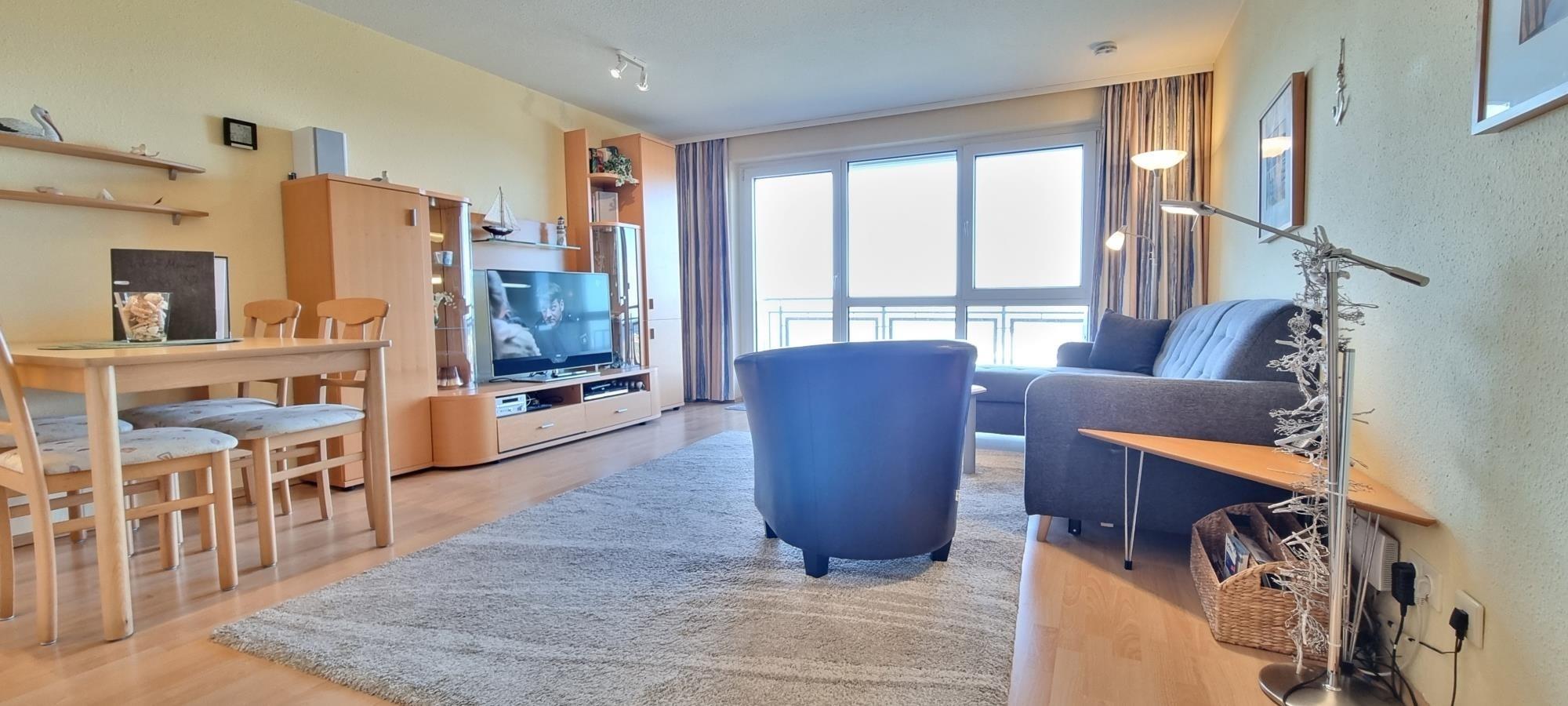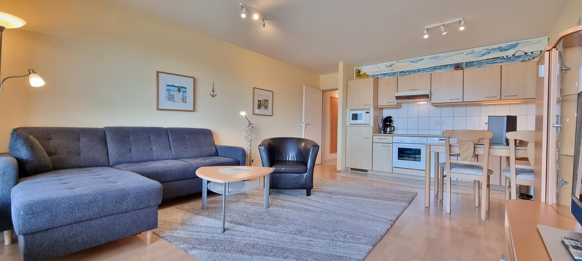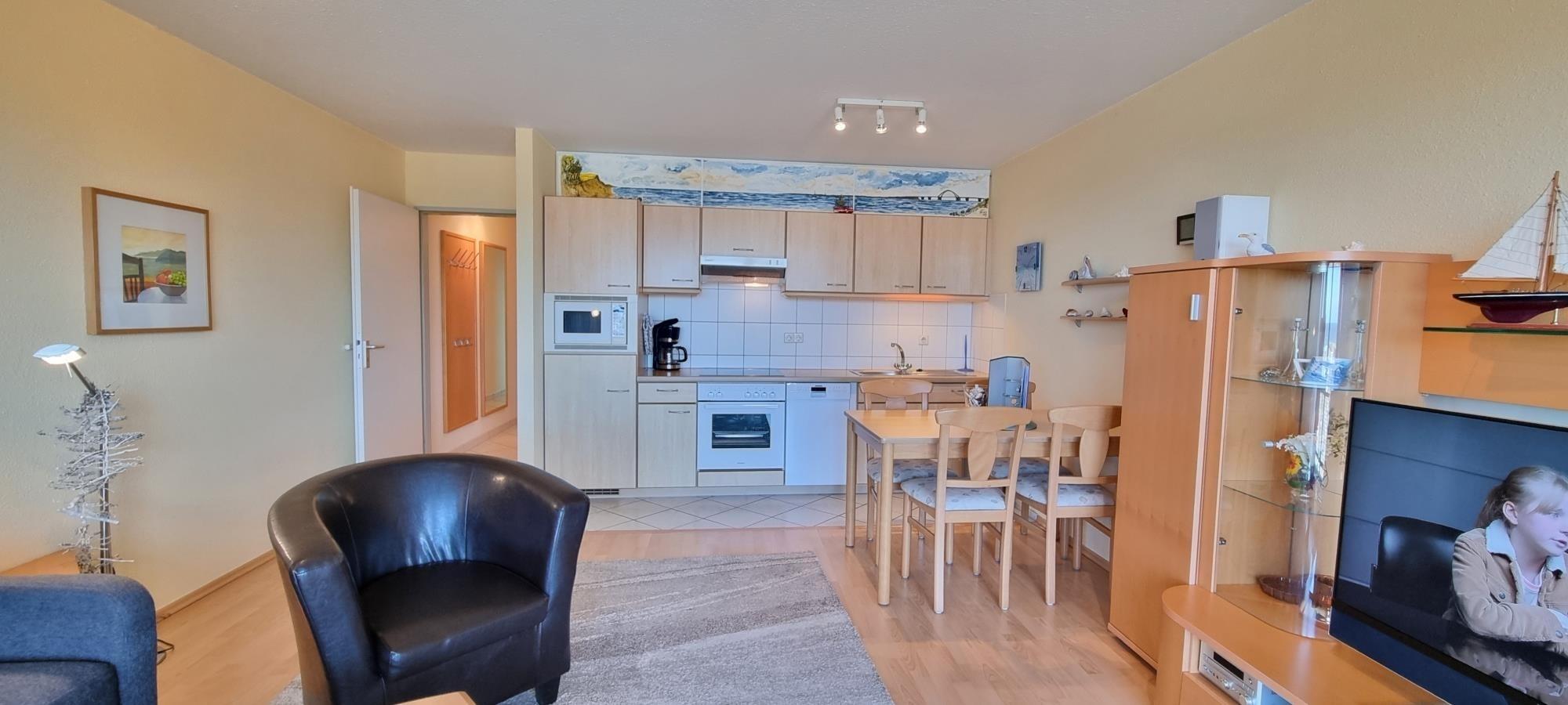 Dieses helle und geschmackvoll eingerichtete 2-Zimmer-Appartement an der Ostsee bietet die perfekte Kombination aus Komfort, moderner Ausstattung und traumhaftem Ausblick. Ideal für Paare oder Erholungssuchende, überzeugt die Ferienwohnung durch ihre großzügige Raumaufteilung und eine angenehme Wohnatmosphäre.