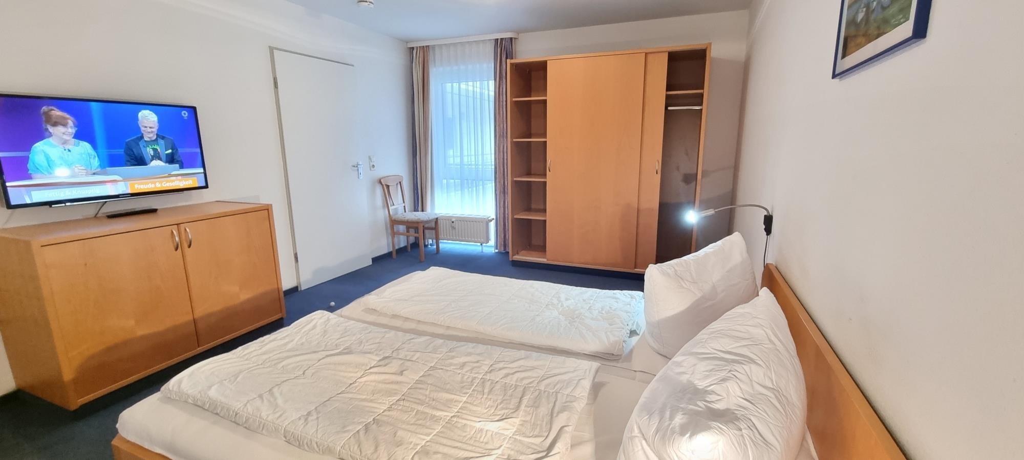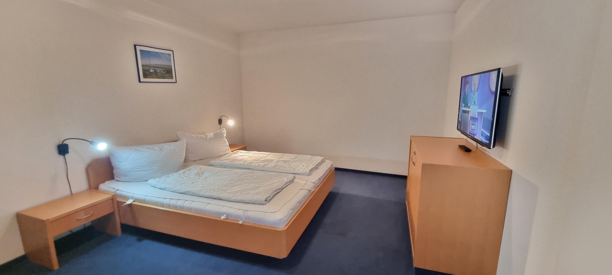 Das separate Schlafzimmer ist mit einem gemütlichen Doppelbett und großem Kleiderschrank ausgestattet, sodass Sie erholsame Nächte genießen können. Im hellen Wohnbereich finden Sie eine offene Küchenzeile mit Esstisch – ideal für die Selbstverpflegung während Ihres Urlaubs. Für zusätzliche Gäste steht eine Schlafcouch im Wohnzimmer zur Verfügung.