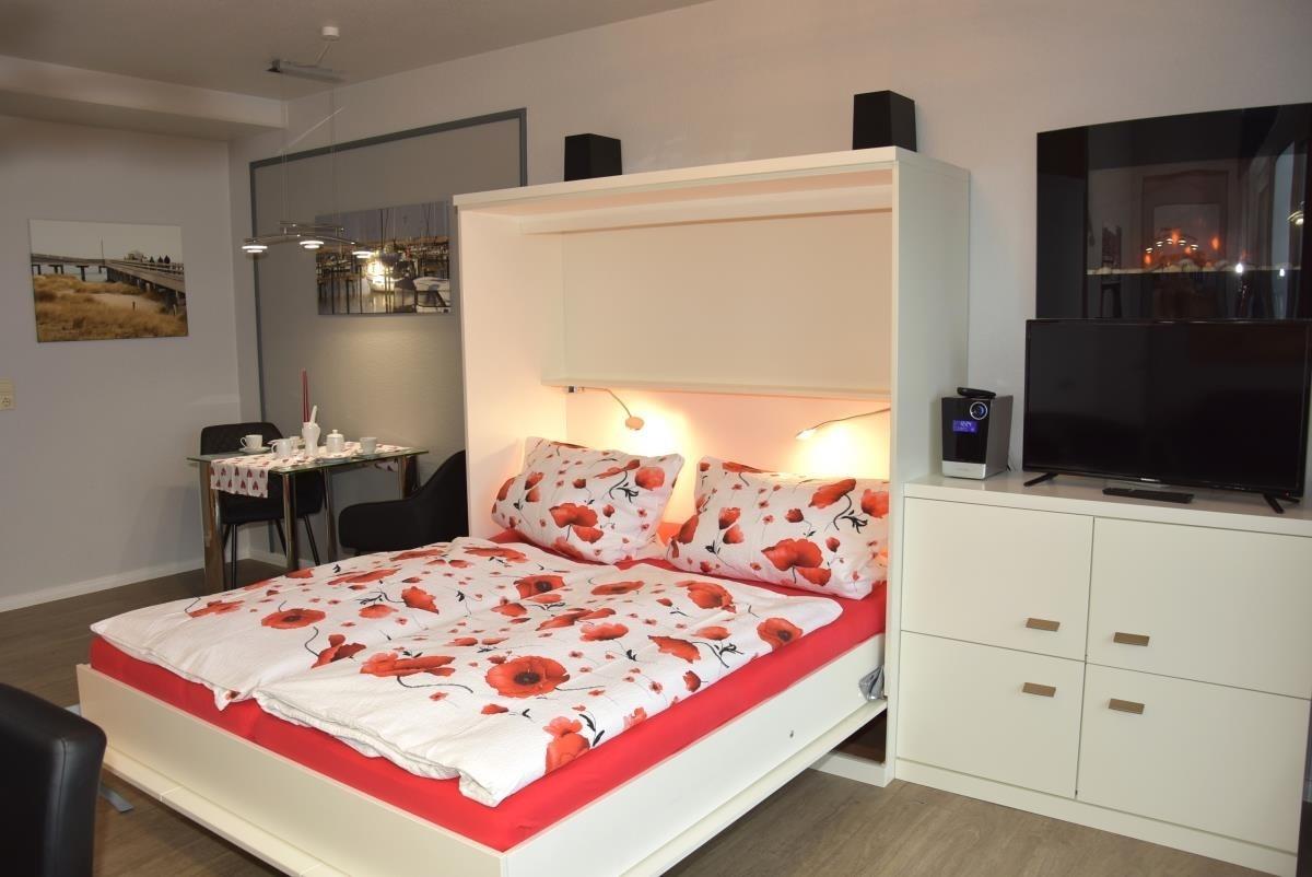 Willkommen im Studio 66 "Steilküst", Ihrem modernen Rückzugsort an der Ostsee! Dieses renovierte, ca. 40 m² große 1-Zimmer-Appartement liegt in der 4. Ebene der Ferienanlage Ostseeresidenz auf dem Steinwarder – nur wenige Schritte vom feinsandigen Strand von Heiligenhafen entfernt.