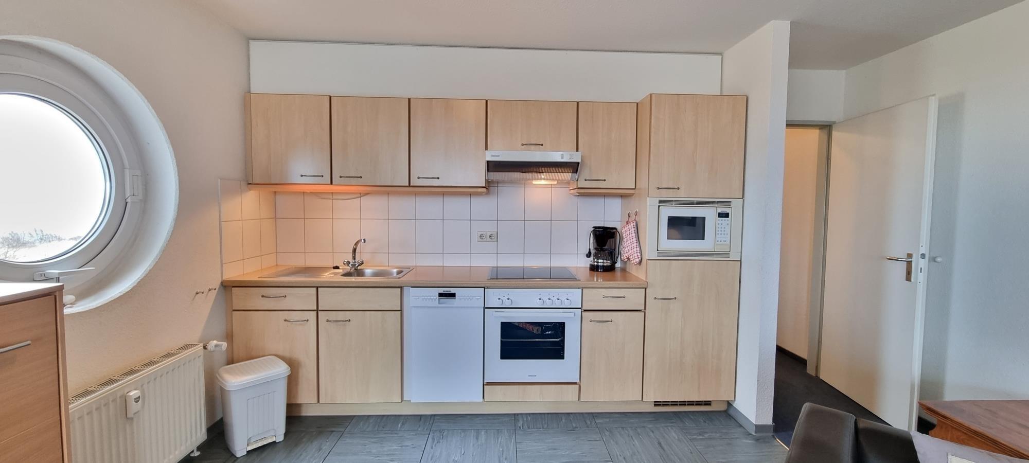 Die praktische Küchenzeile ermöglicht eine unkomplizierte Selbstversorgung, sodass Sie Frühstück, Snacks oder ein gemütliches Abendessen jederzeit bequem zubereiten können. Das moderne Duschbad rundet die Ausstattung ab und sorgt für einen angenehmen Start in den Urlaubstag.