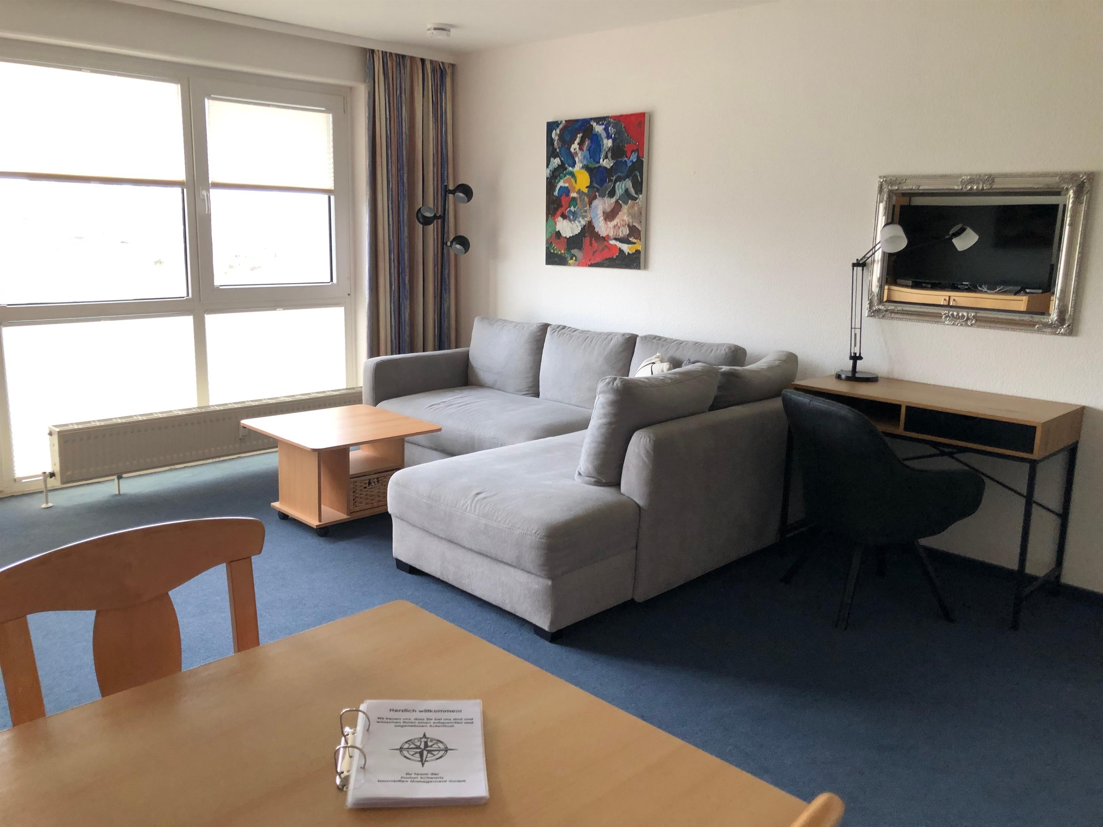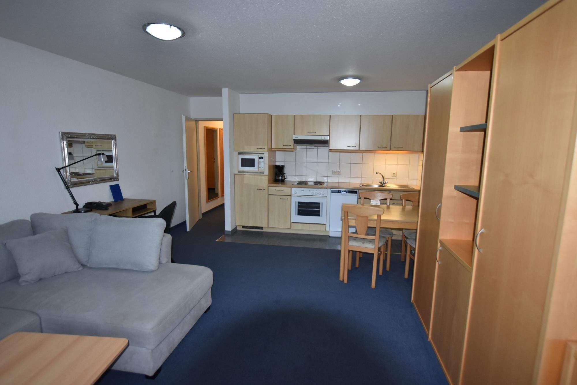 Das gemütlich eingerichtete Appartement verfügt über ein separates Schlafzimmer mit bequemem Boxspringbett (zwei Matratzen à 90x200 cm), Kleiderschrank und zweitem Fernseher. Im kombinierten Wohn- und Essbereich befindet sich eine Schlafcouch, die zwei zusätzliche Schlafplätze bieten kann. Die integrierte Küchenzeile ist mit einem Geschirrspüler und allen wichtigen Küchenutensilien ausgestattet - perfekt für die Selbstversorgung. Ein Duschbad sowie ein kleiner Schreibtisch für digitale Pausen oder persönliche Notizen ergänzen die Ausstattung.