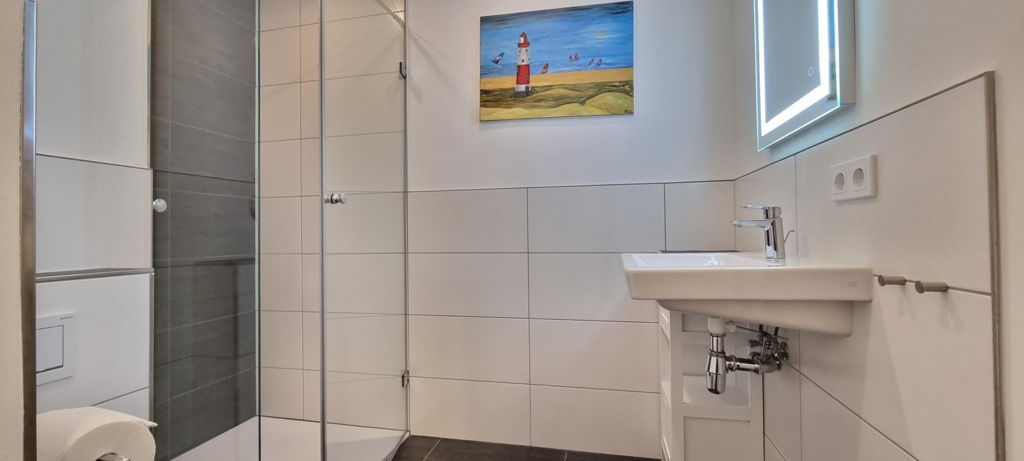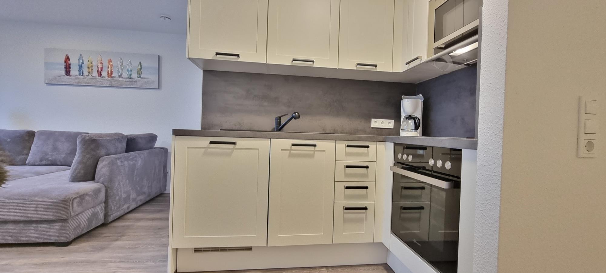 Ein modernes Duschbad, kostenfreies Glasfaser-WLAN sowie ein eigener PKW-Stellplatz runden das Angebot ab. Auch das nahe gelegene Aktiv-Hus und die Promenade laden zu Freizeit, Wellness und Spaziergängen ein.