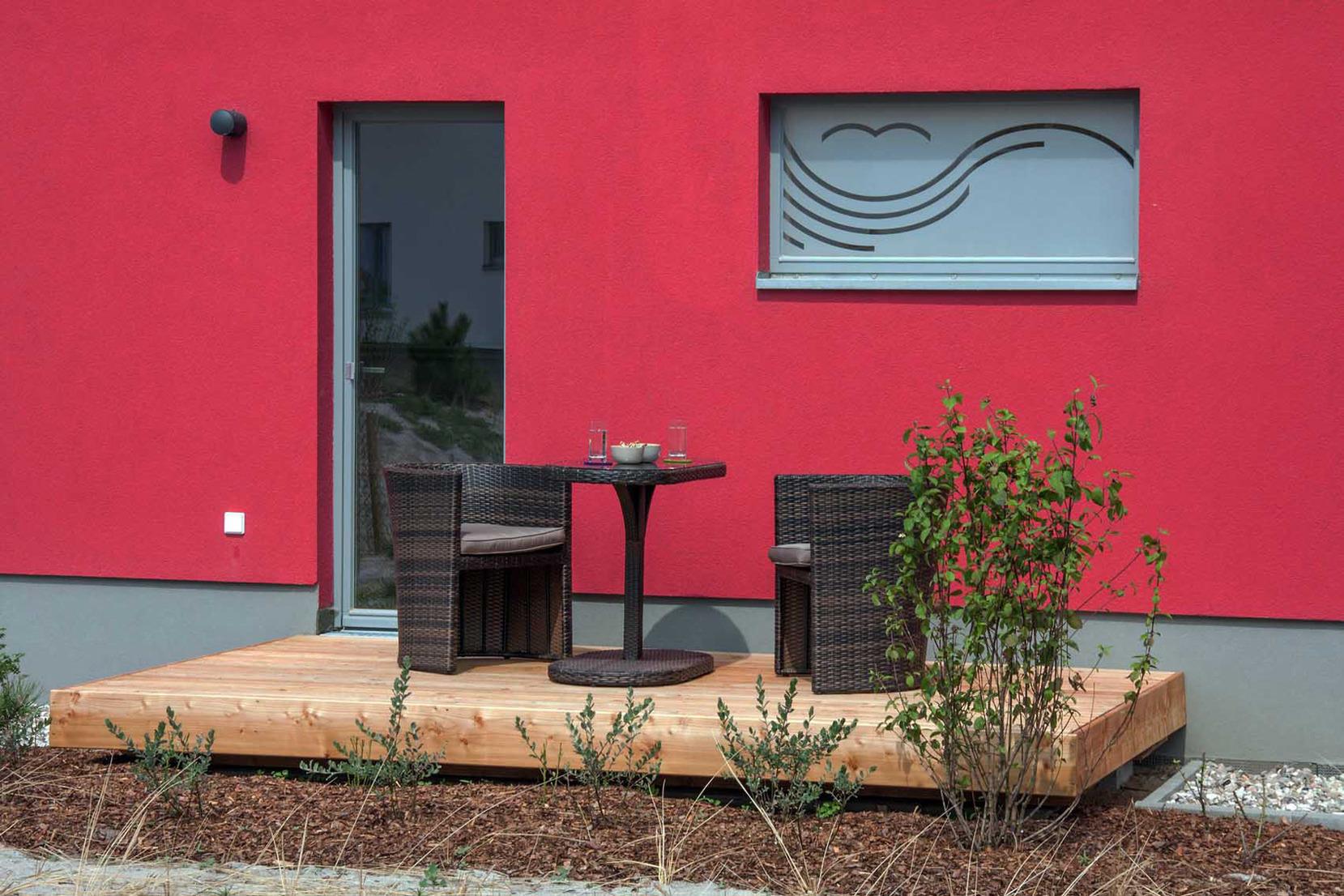 Schon von weitem leuchtet Ihnen das freistehende rote Einzelhaus in zentraler Lage entgegen. Zwei Terrassen sind in einen eigenen, einer Dünenlandschaft nachempfundenen, Garten eingebettet. Innen erwartet Sie auf zwei Etagen eine helle, großzügige Wohnung mit hochwertiger moderner Ausstattung.