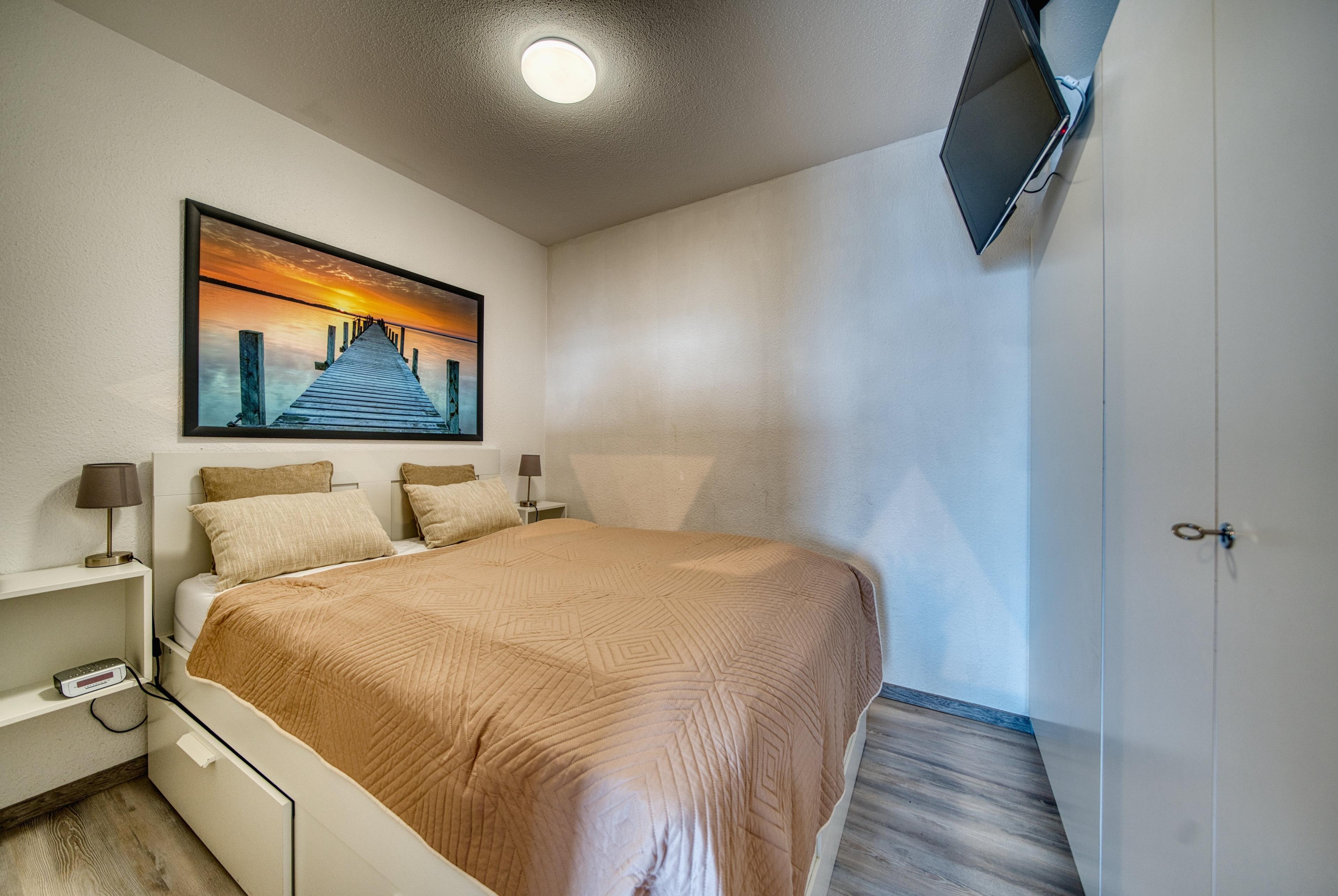 Schlafbereich mit Doppelbett [&] eigenem TV