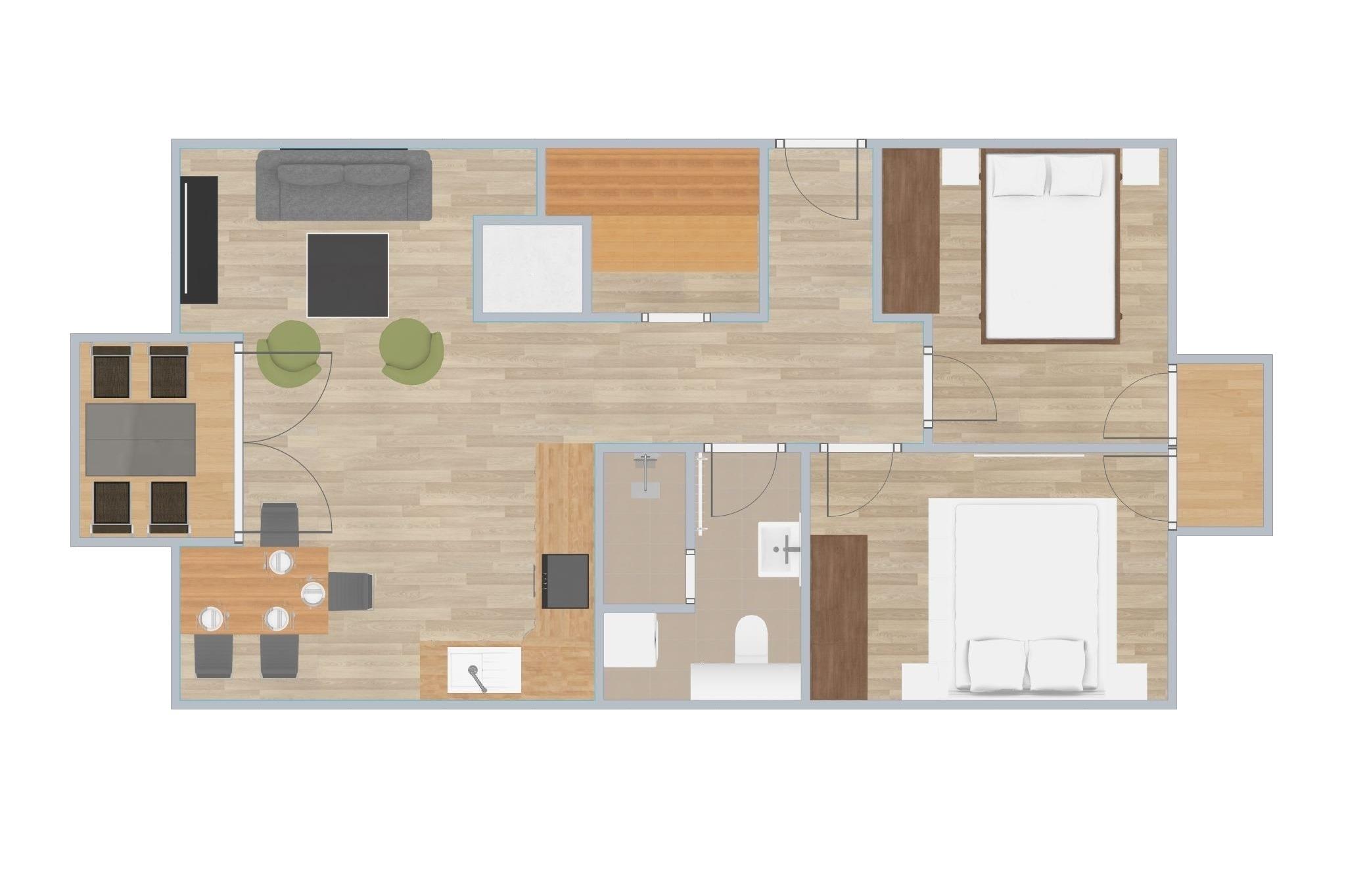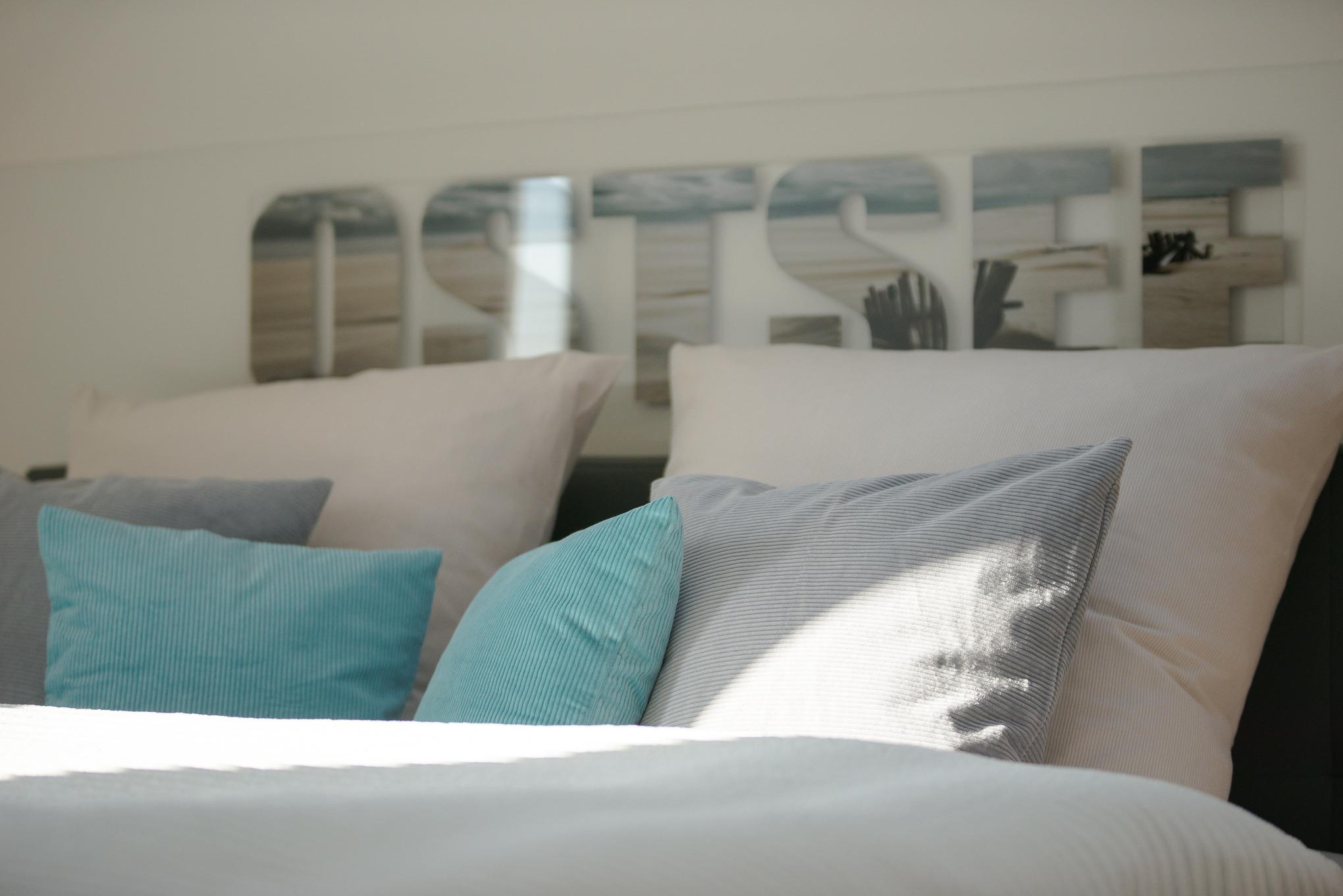 Die 2 Schlafzimmer sind mit komfortablen Boxspringbetten (1,80 x 2,00 m und 1,40 x 2,00 m) ausgestattet. Im größeren Schlafraum ist zusätzlich ein großer Flachbildfernseher vorhanden. Beide Schlafzimmer, die sich auf der vom Yachthafen abgewandten Seite befinden, sorgen durch Verdunklungs-Plissee-Anlagen und einem elektronischen Dachfensterrollo für einen erholsamen Schlaf. Ein Kinderreisebett ist ebenfalls vorhanden.