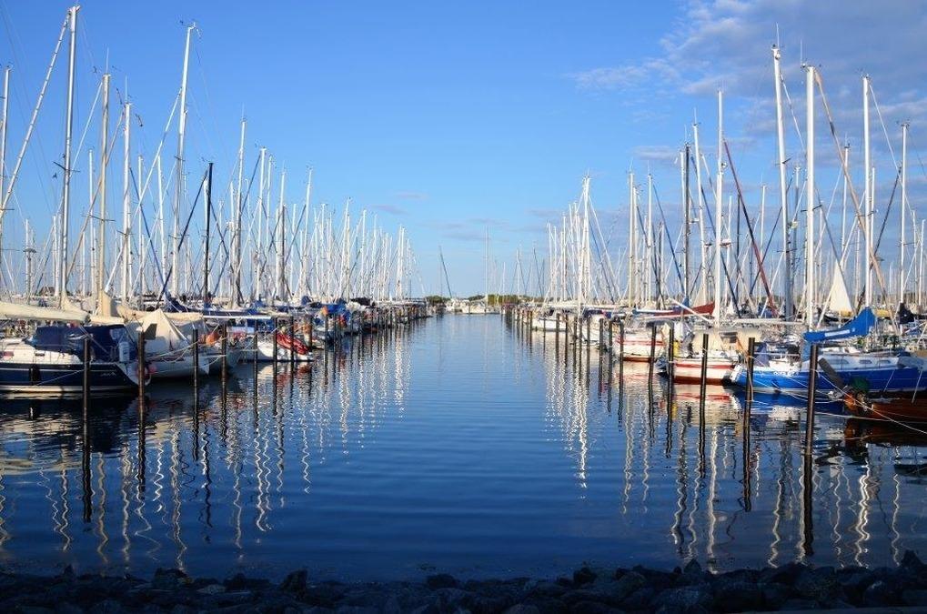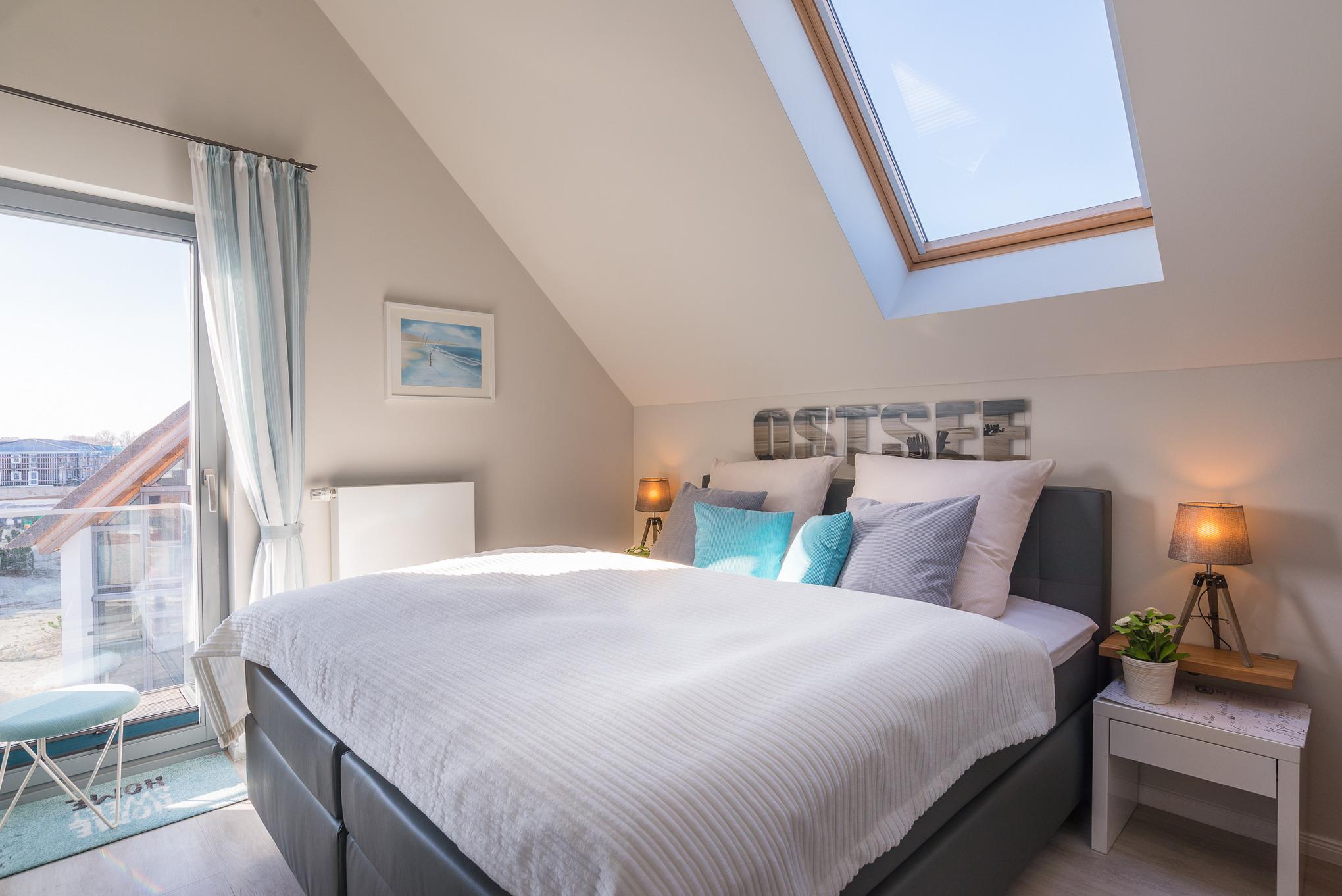 Moderne Ferienwohnung direkt am Yachthafen mit tollem Blick auf Graswarder und Ostsee, nur 300 m vom Strand entfernt.
