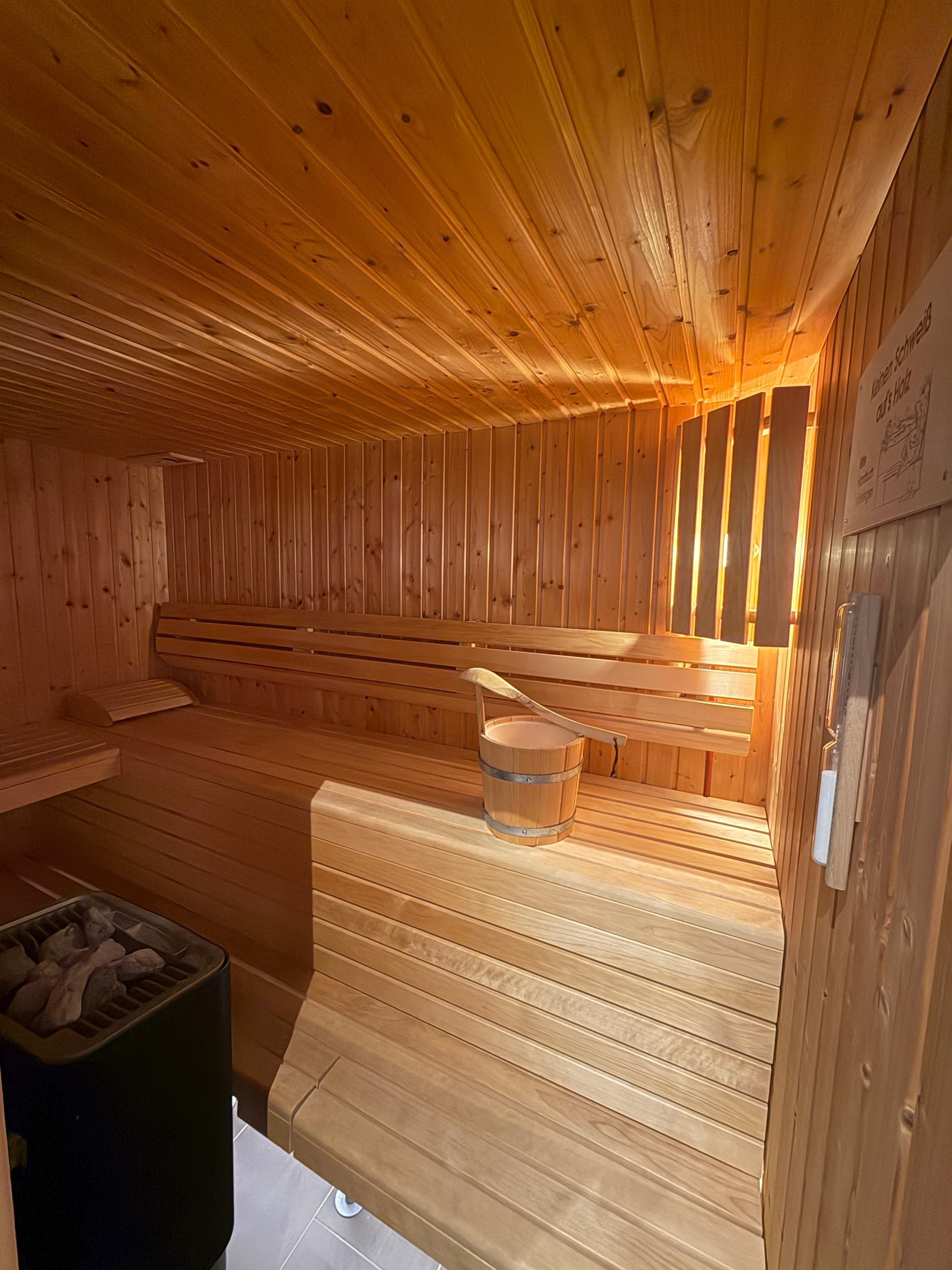 Für die kühlere Jahreszeit und für Saunafans ist in der Wohnung eine Sauna vorhanden.