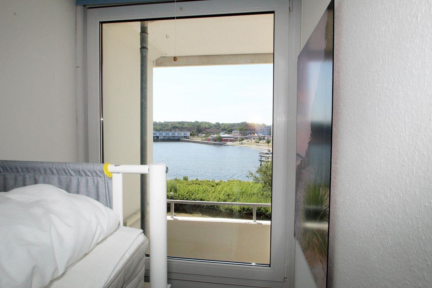 Schönes Appartement im dritten Stock mit Fahrstuhl zur Binnenseeseite mit herrlichem Blick auf das Ferienparkufer mit Steg und Promenade. Der Ostsee-Sandstrand mit Strandkorbverleih ist nur über die Straße entfernt und die nächsten öffentlichen Toiletten am Strand sind weiter entfernt, als das eigene Klo des Appartments.