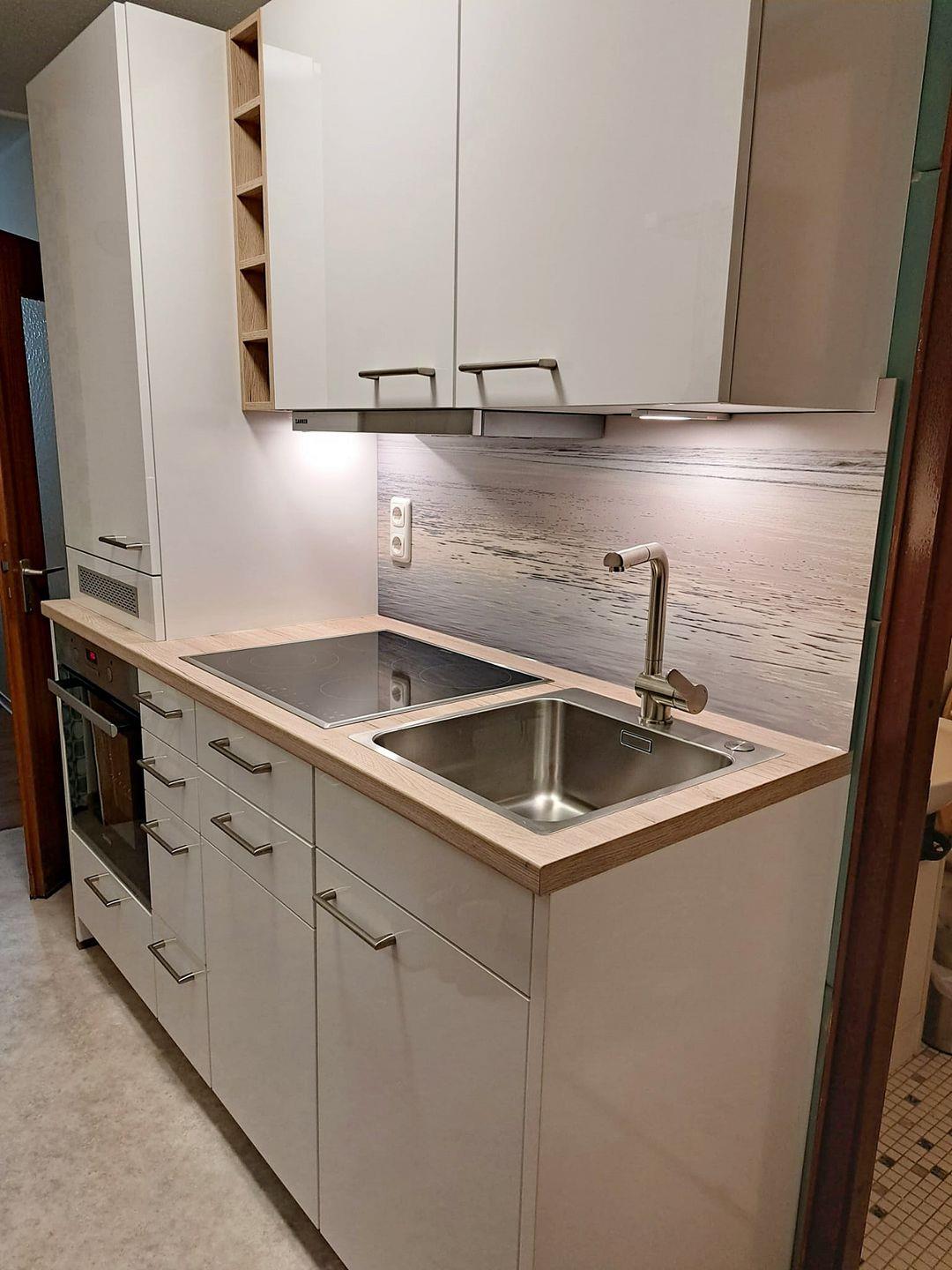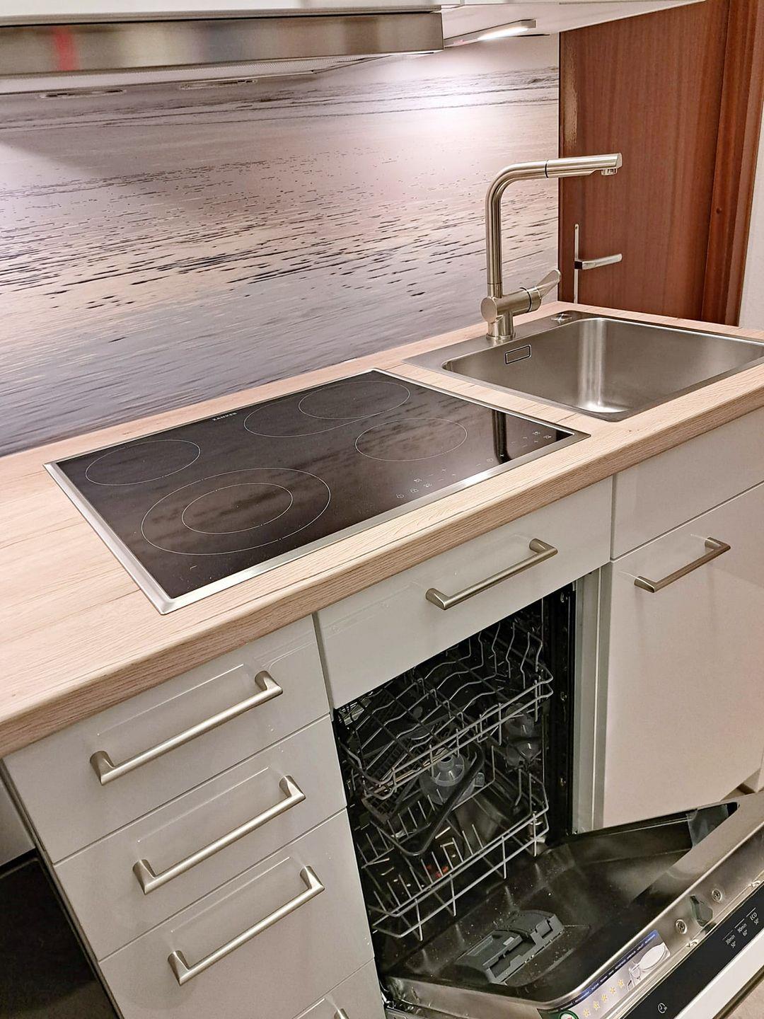 Die neue Küche ist im April 2023 eingebaut worden und verfügt über einen Backofen, eine Spülmaschine, Kühlschrank und Cerankochfeld sowie alle üblichen Utensilien.