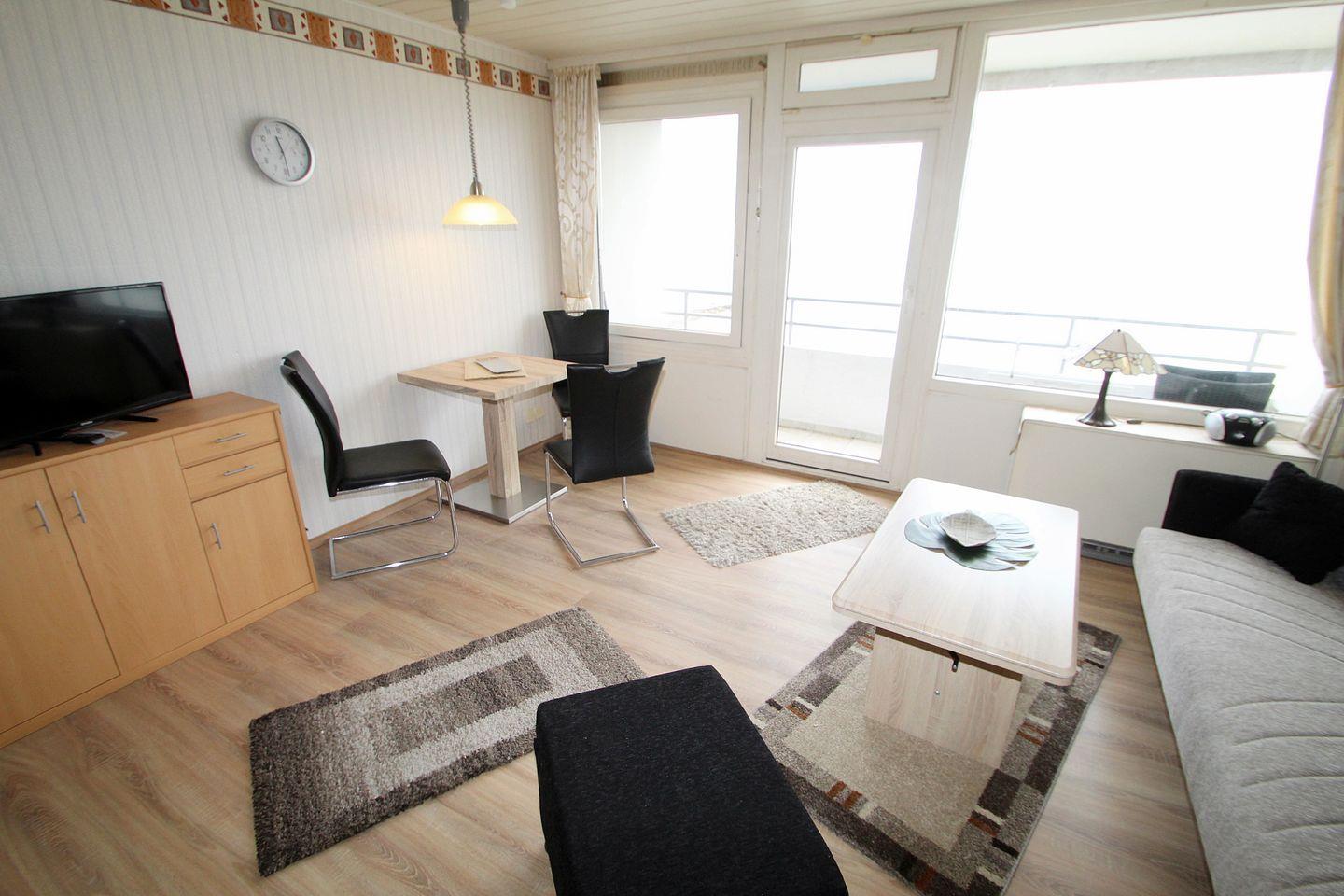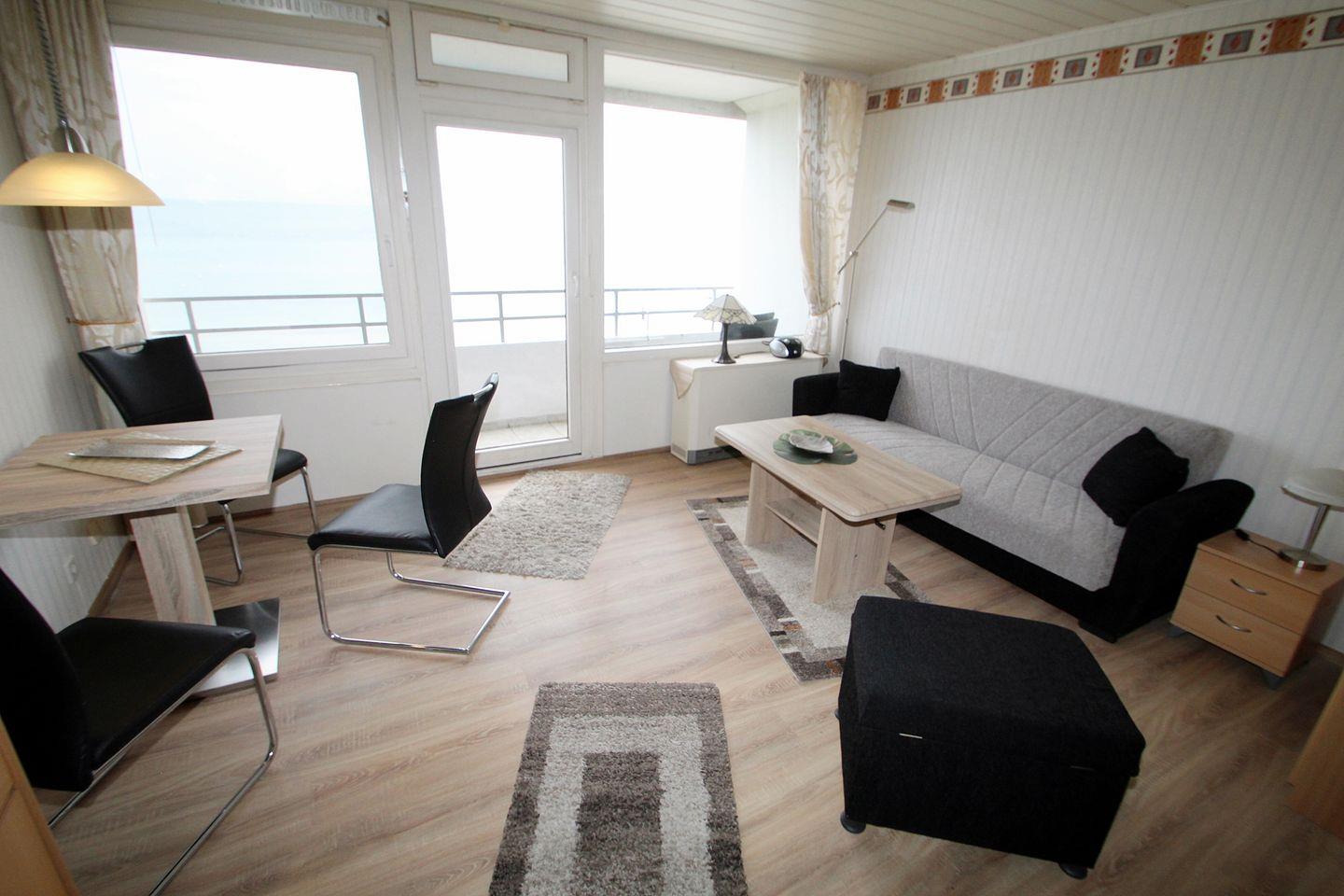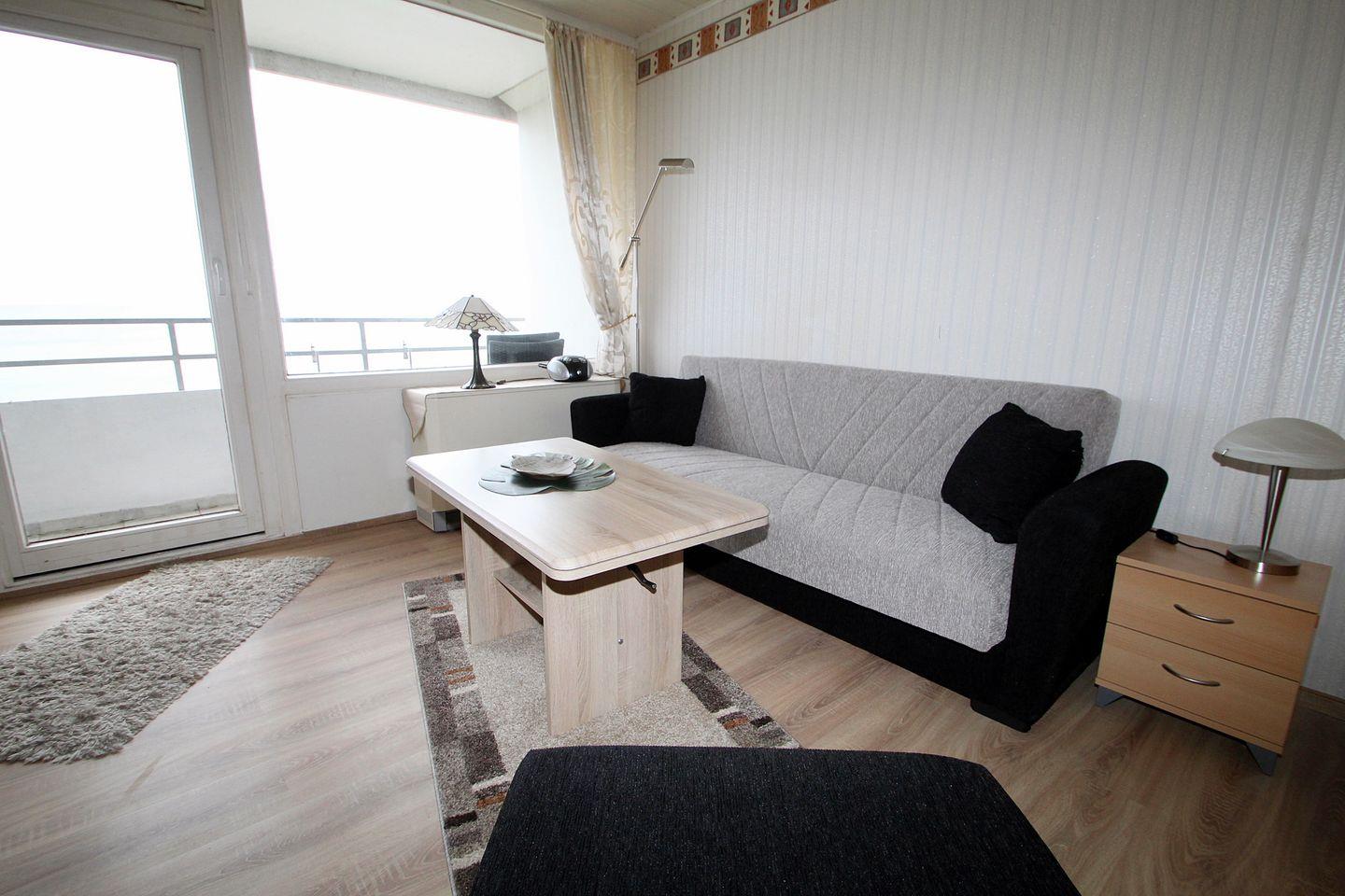 Diese Wohnung besticht durch Ihren tollen Ostseeblick, den Sie durch den Wohnbereich und der 2er Couchgarnitur wunderbar genießen können.