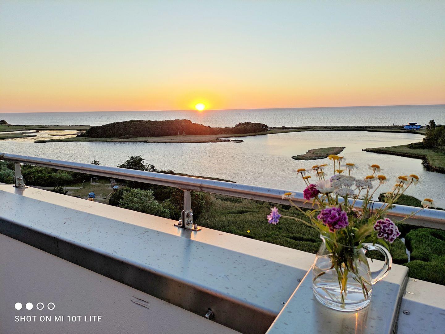 Penthouse im Ferienpark B10-002 in Heiligenhafen: 65 m² im 10. Stock mit Aufzug, 2 Schlafzimmer für bis zu 4 Personen. Offene Küche zum Wohnzimmer mit Ceranfeld, Spülmaschine, Mikrowelle sowie Waschmaschine/Trockner zur Eigennutzung. Balkon und Terrasse mit Gartenmöbeln, Windschutz und außergewöhnlich gutem Meer- und Landschaftsblick. Sandstrand/Meer ca. 400 m, Restaurant 150 m. Kostenloser Parkplatz, WLAN, Nichtraucher.