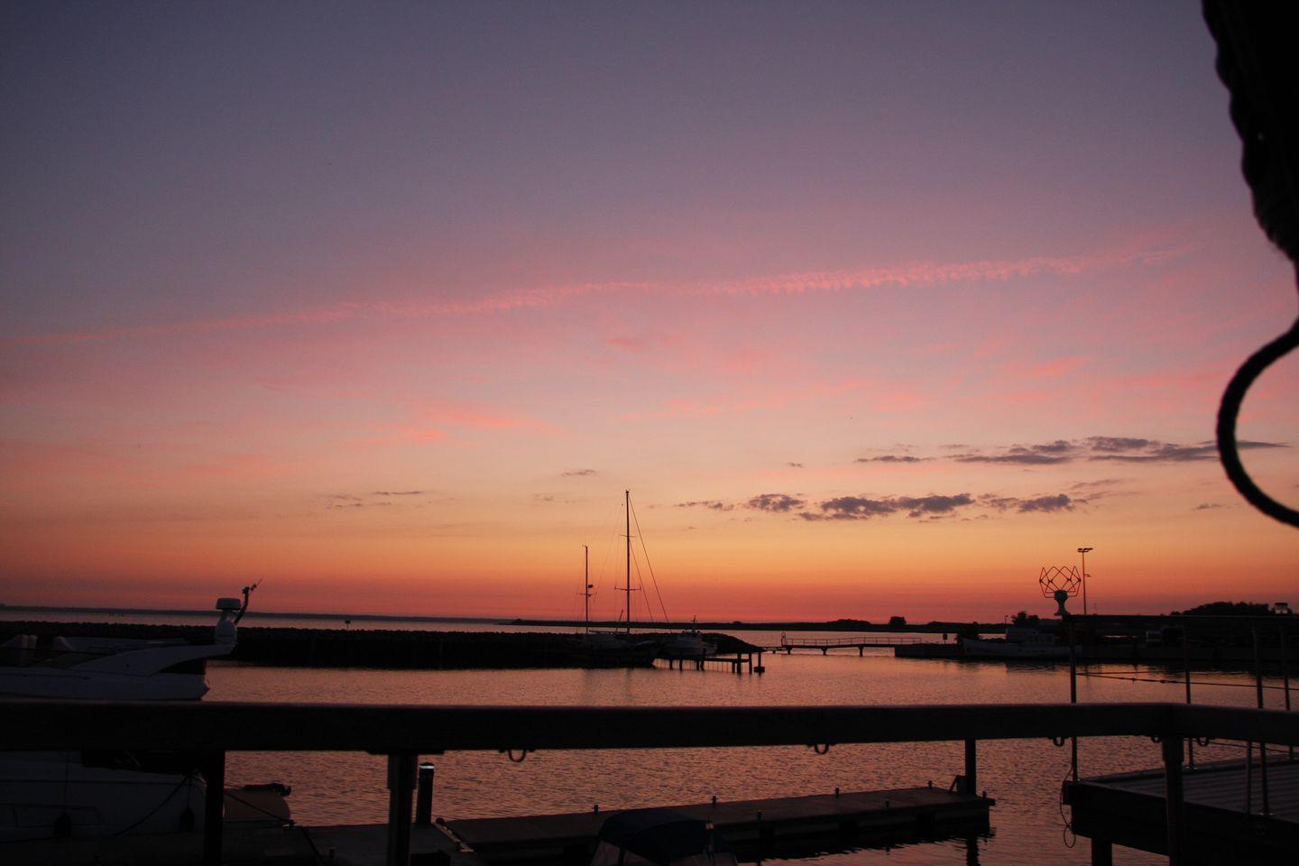 Erleben Sie Komfort und Entspannung auf dem Hausboot Sunshine mit großem Sonnendeck und herrlichem Hafenblick in Heiligenhafen.