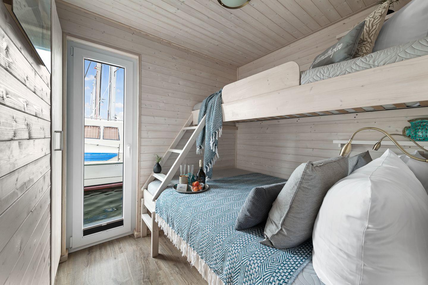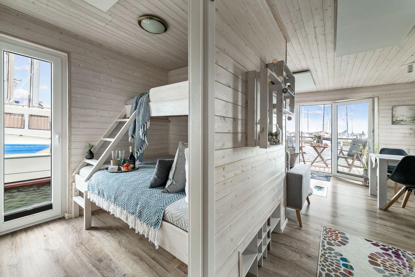 Das Hausboot Blabear in Heiligenhafen ist ein magischer Rückzugsort auf dem Wasser – ein Ort, an dem Ruhe.