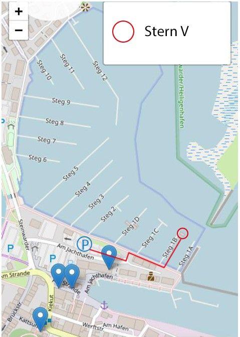 Das HAUSBOOT STERN V liegt in einem der schönsten Yachthäfen der Ostsee in Heiligenhafen und bietet eine einmalige Lage mit freiem Blick auf das Meer.
