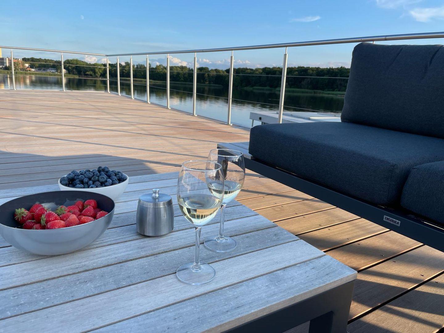Erleben Sie exklusiven Urlaub auf dem stilvollen Hausboot Aurora in Heiligenhafen an der Ostsee.