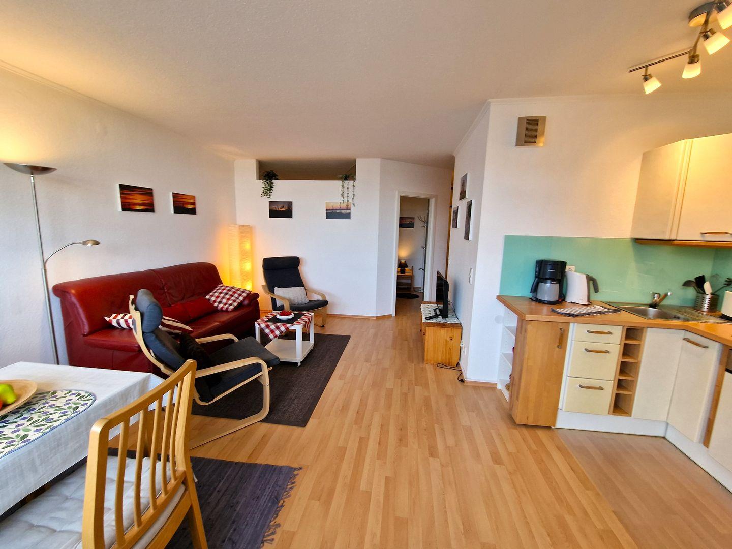 Diese moderne Nichtraucher-Ferienwohnung bietet Ihnen auf 45 m² alles, was Sie für einen unvergesslichen Urlaub zu zweit (plus max. 1 Baby im Reisebett) an der Ostsee benötigen.