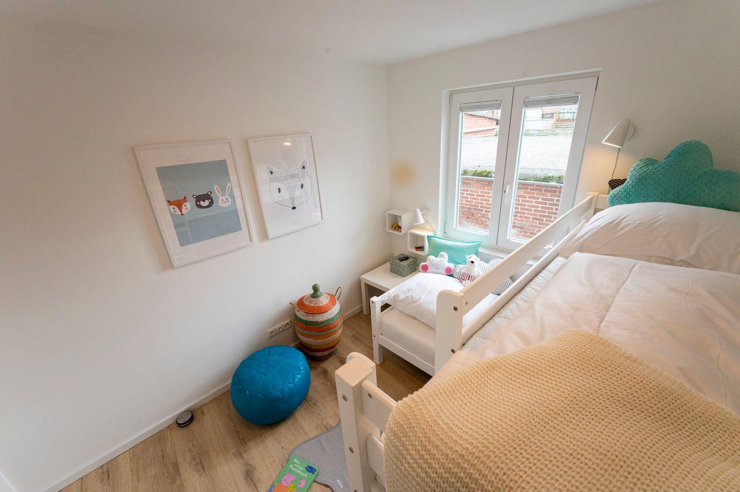 Über die Treppe gelangen Sie direkt in das Kinderzimmer mit einem seitlich versetzten Hochbett und viel Platz zum Spielen. Für die ganz Kleinen bieten wir zusätzlich ein Reisebett und Treppengitter an. Außerdem gibt es ein Schlafzimmer mit Doppelbett. Diese Etage wird durch ein geräumiges Duschbad komplettiert.