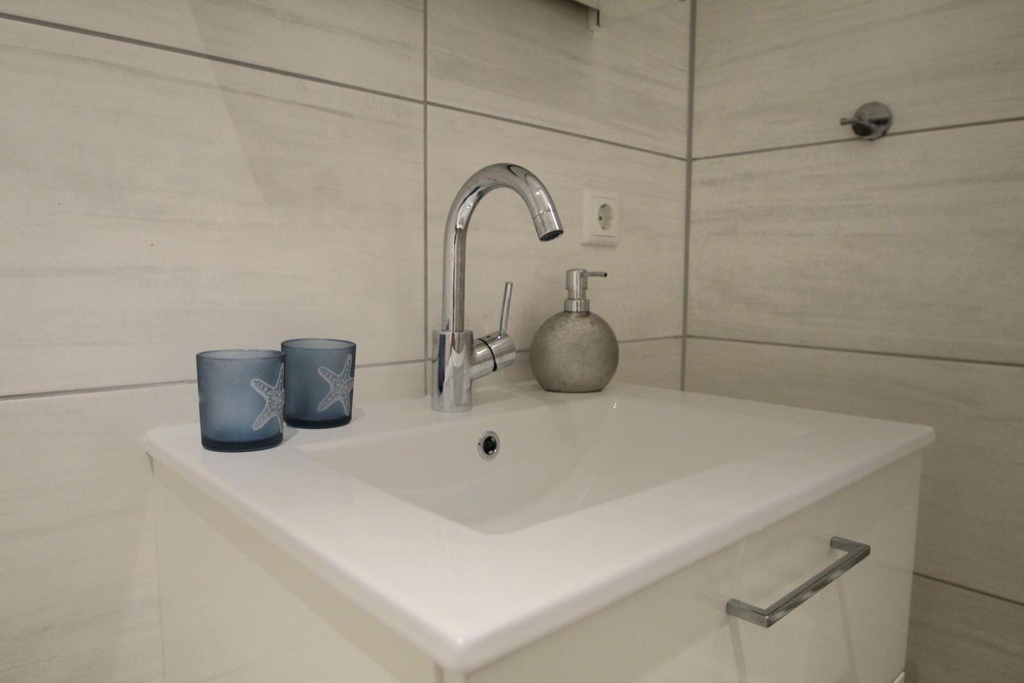 Die offene Küche ist zum Wohnzimmer hin gestaltet und bestens ausgestattet: Spülmaschine, Induktionsherd, Backofen, Kaffeemaschine, Wasserkocher, Toaster, Kühlschrank mit Gefrierfach, Geschirr und Besteck sowie zahlreiche Küchenutensilien stehen zur Verfügung. So können Sie sich auch im Urlaub problemlos selbst versorgen und gemeinsame Mahlzeiten zubereiten. Ein Staubsauger sowie ein Abfalleimer komplettieren die praktische Ausstattung.