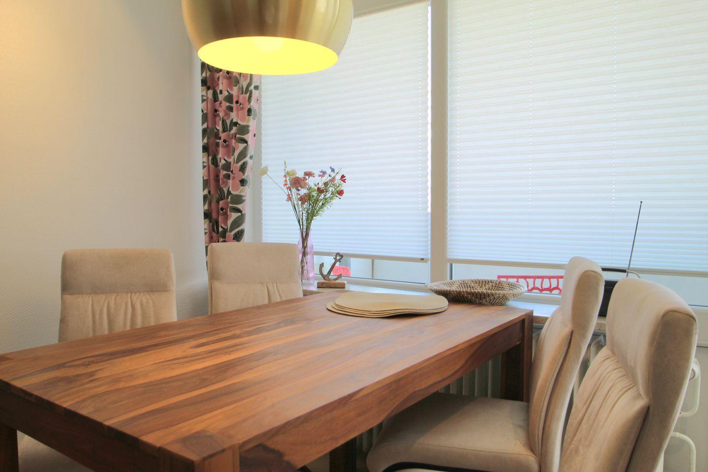 Die Raumaufteilung umfasst insgesamt drei Zimmer, darunter zwei separate Schlafzimmer mit pflegeleichtem Vinylboden. Für einen angenehmen Aufenthalt sorgt die Zentralheizung, die eine gemütliche Wohnatmosphäre in allen Räumen gewährleistet. Das Wohnzimmer bietet eine hochwertige Sofaecke mit zusätzlichem Sofa, einen Flatscreen-TV und Zugang zum Balkon. Der Essbereich mit Esstisch und separater Garderobe ist offen in das Wohnkonzept integriert. Von hier aus genießen Sie einen guten Seeblick, einen eingeschränkten Blick auf das Meer sowie Ausblicke auf die umliegende Landschaft und den Garten.
