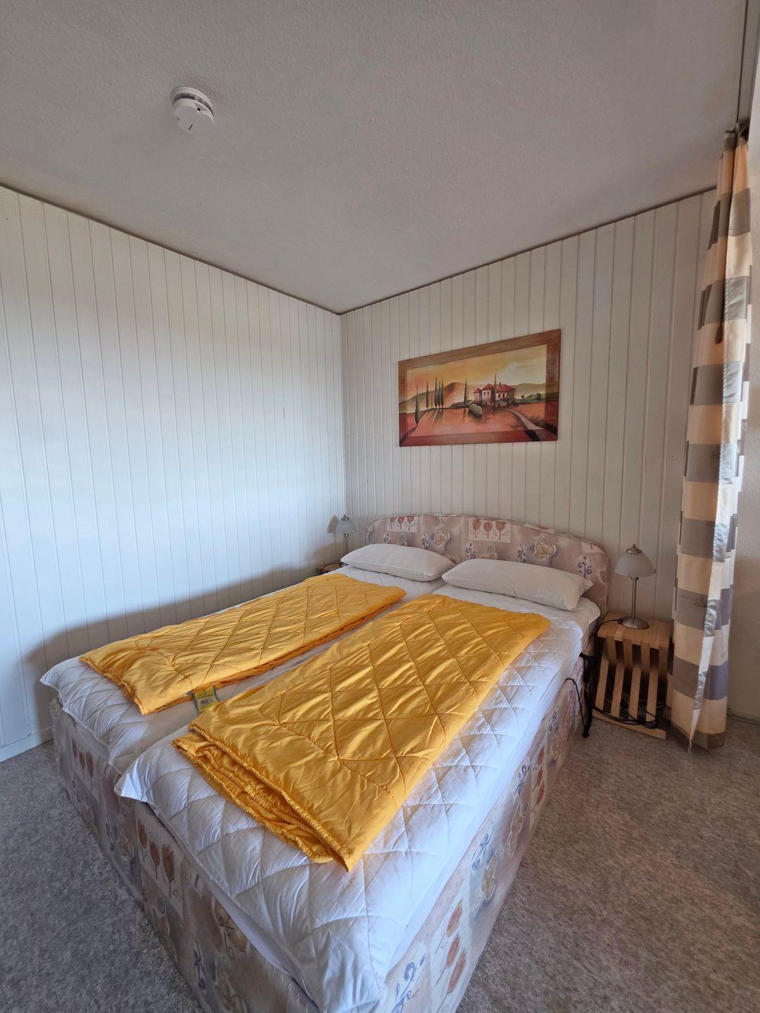 Ein offener Schlafbereich bietet Schlafmöglichkeiten für zwei Personen und verfügt über ein Doppelbett.