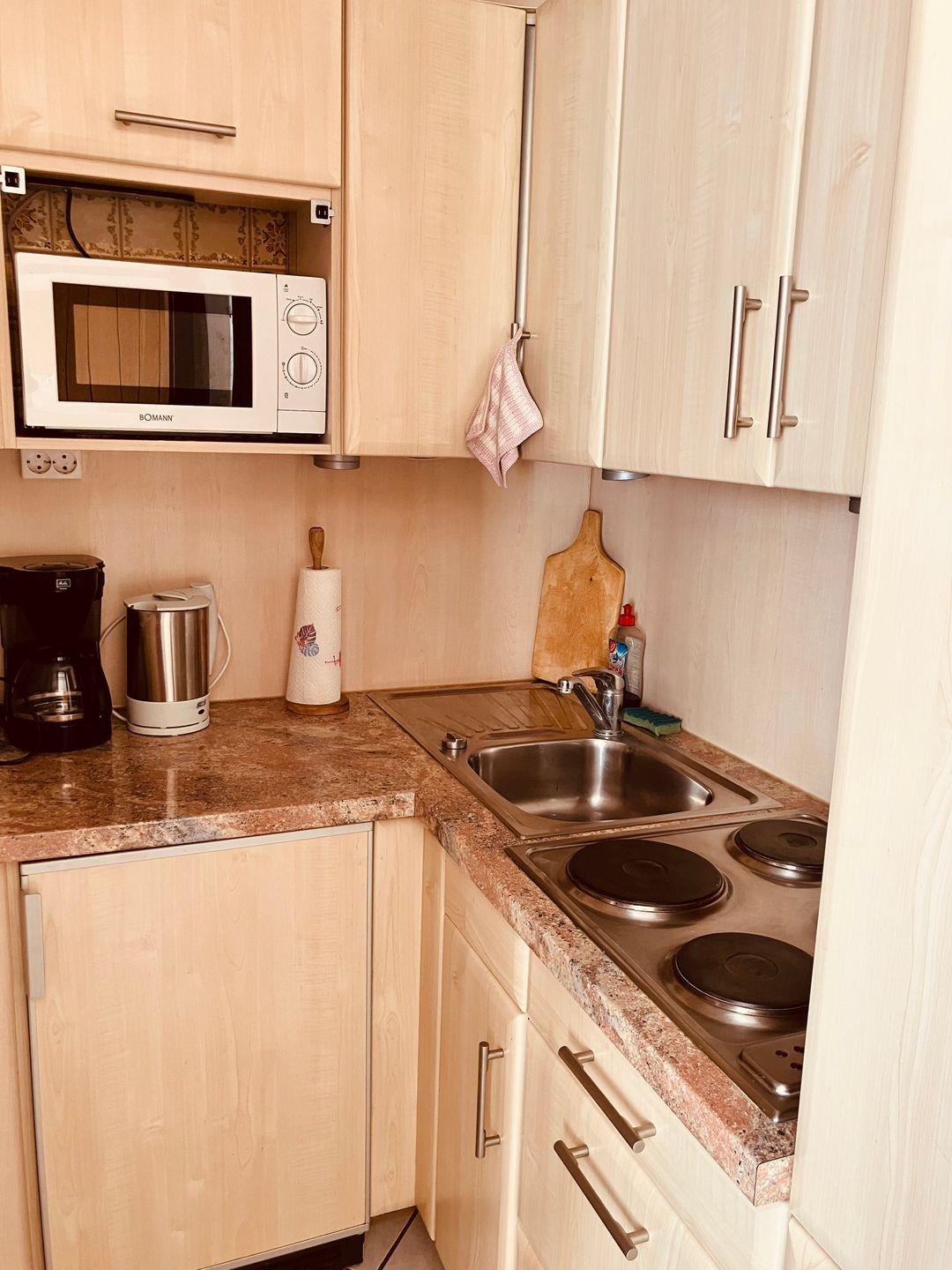 Ein besonderes Highlight sind das modernisierte Badezimmer sowie die zeitgemäße Küche. Das Bad überzeugt mit einer modernen Dusche und einem frischen, schönen Erscheinungsbild. Die Küche ist gut ausgestattet und bietet alles, was Sie für die Selbstversorgung benötigen.