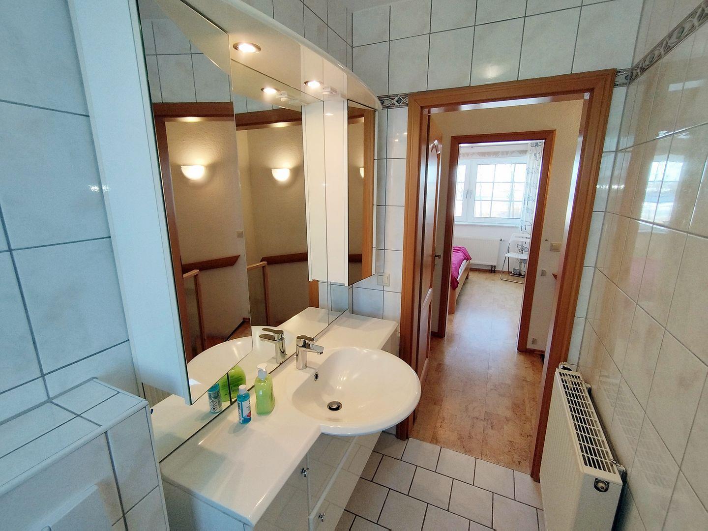 Im Wohnzimmer wartet eine gemütliche L-Couch darauf der ganzen Familie Platz zu bieten. Eine Kompaktanlage, W-Lan und ein TV-Gerät stehen bei Bedarf für Ihre Unterhaltung zur Verfügung. Auf dieser Etage finden Sie (zusätzlich zum Duschbad oben) ein Gäste-WC.