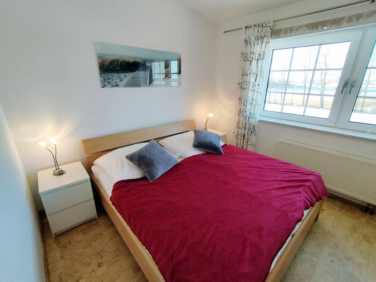 In der dritten Etage befinden sich die Schlafzimmer und das Duschbad. Das größere Schlafzimmer mit Doppelbett (160*200 cm) und Schiebetüren-Kleiderschrank bietet einen tollen Ausblick über den See und das Naturschutzgebiet. Hier ist bei Bedarf Platz um das Kinderreisebett aufzustellen, welches Sie im Kleiderschrank finden.